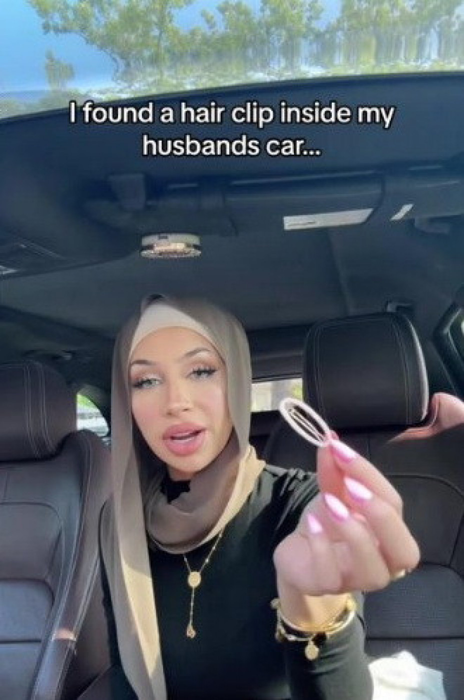 - Bukvalno se tresem, ljudi. Upravo sam pronašla šnalu u kolima mog supruga. Očigledno da ovo nije u redu iz više razloga. Jedan od njih je što ja nosim hidžab i šnala očigledno nije moja. A on upravo dolazi i izgleda kao krivac, kao da sakriva lice - govori žena u objavi, a nekoliko trenutaka potom u auto ulazi njen suprug.