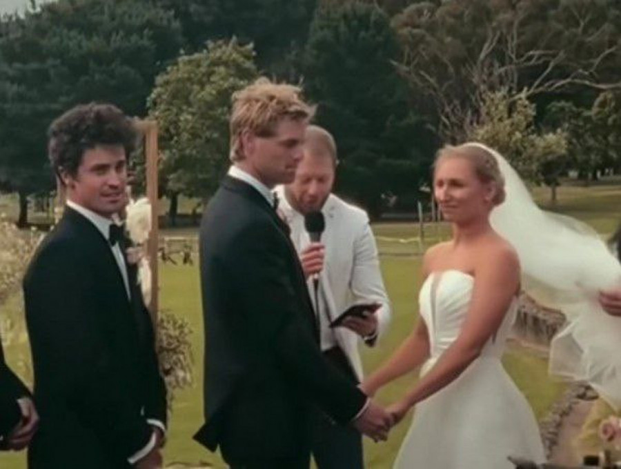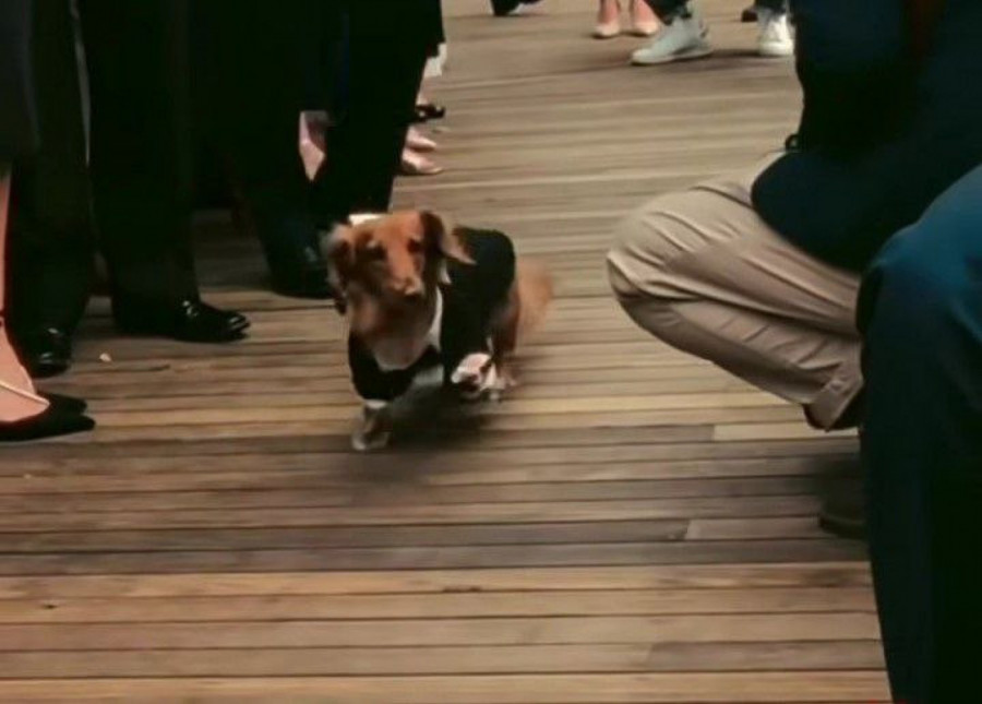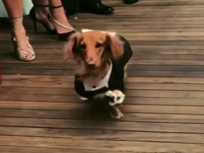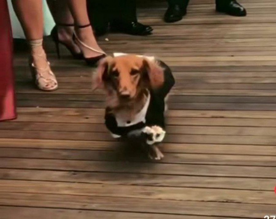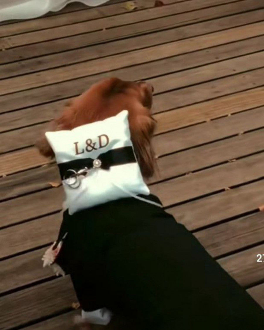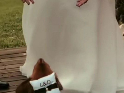 Nije retkost da se tako mačke i psi posebno udešavaju na svabeni dan, budući da će uslediti većina fotografija srećnog para upravo sa njihovim ljubimcem. Jedan par došao je na originalno rešenje. Naime oni su se dosetili da sudbonosno “da” izgovore na otvorenom, a za svog psa, smislili su poseban zadatak, koji je on obavio bez greške.