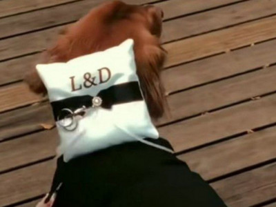 Pas je paradno obučen za ovaj svečani dan kada ima posebnu ulogu. Na određeni signal, on kreće ka mladencima, a to je, ni manje ni više već u trenutku kada matičar očekuje burme. Ljubimac radosno i uvežbano ide do improvizovanog oltara, budući da je venčanje na otvorenom, a tek kada se okrene može se videti da on ima jastučić oko vrata na koju su sa gornje strane privezane burme. Devojka nosi dugu novu venčanicu, dok je mladoženja u novom odelu. Prisutna je i gomila ljudi, matičar, kao i fotografi i pas se zbunjeno probija kroz sve njih. On dolazi do mlade i tek kada namiriše po šlepu venčanice da je u pitanju njegova vlasnica, a takođe i vlasnik, on veselo kreće da maše repom. Nevesta ga uzima u naručje dok mladožnja odvezuje burme koje će svakim trenutkom stavljanjem na prst označiti njihovo stupanje u brak.