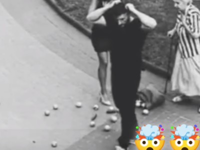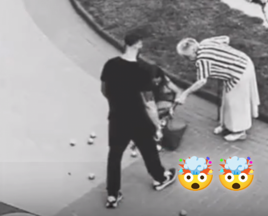 Mnogi ljubavni parovi imaju problema u vezi, a neretko ih mnogi rešavaju na ulici koja nije idelano mesto za tako nešto. Upravo takvu situaciju imao i jedan par. Naime, dvoje mladih ljudi žustro se prepiralo nasred ulice. Budući da je svađa potrajala, u međuvremenu je bakica prošla pored njih. Ova starija žena se očigledno vraćala sa pijace i imala je punu torbu voća, a onda joj se desila nezgoda. Ne zna se da li se ovoj baki torba prosula slučajno ili je ovim gestom želela da prekine svađu dvoje ljubavnika, tek sve zalihe voća su ispale iz torbe i otkotrljale se niz put.