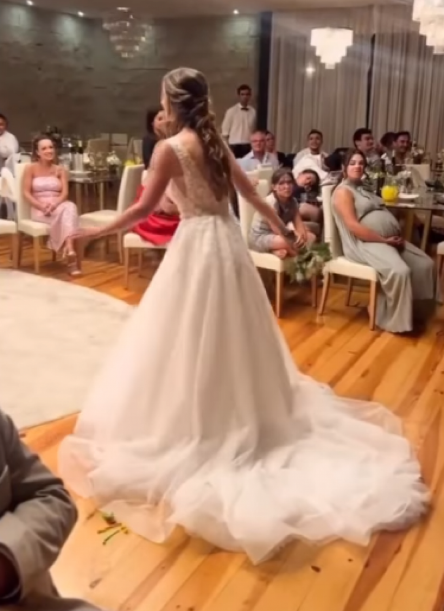 Video počinje kadrom neveste koja se upravo priprema da baci svadbeni buket. Grupa devojaka stoji u suprotnom delu prostorije i željno isčekuje ovaj trenutak. Okupljeni gosti sede sa svih strana i prisustvuju spektaklu dok mlada u romantičnoj beloj venčanici od tila zamahuje rukom i najzad baca bidermajer. Međutim, usledila je scena koja će se dugo prepričavati.