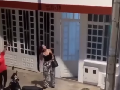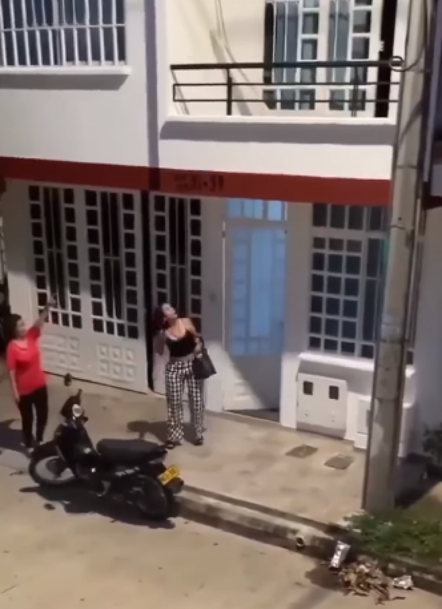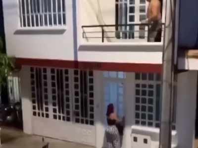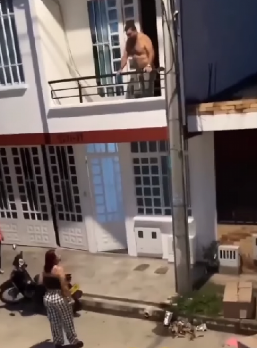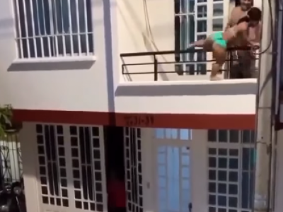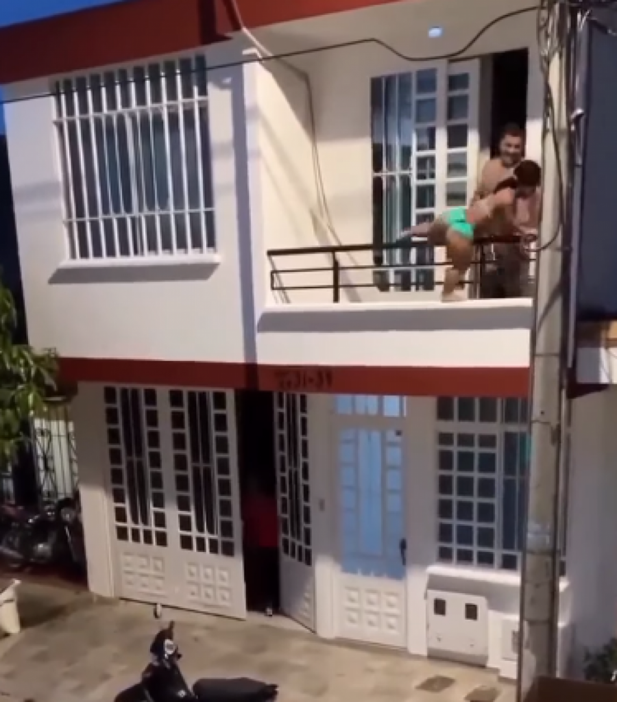 Tu je tek početak skandala koji je usledio. Devojka koja pokušava da se spusti sa terase je patuljastog rasta, a preterano mala visina joj dodatno pravi opterećenje da se spusti. Slučajni prolaznici su uočili problem i pohitali su da joj pomognu. Tako se ova malena žena spušta uz pomoć prolaznika koji su joj pritekli u pomoć. Kao vrhunac ona je u kupaćem kostimu iako je uveliko pala noć i pokušava da veže maramu oko struka, iako joj to ne polazi za rukom.