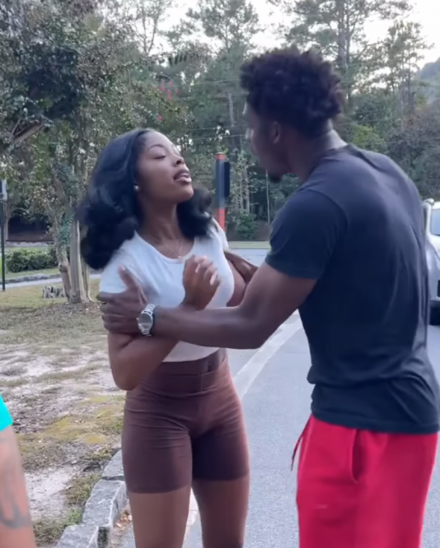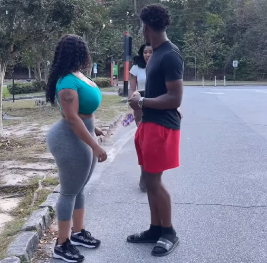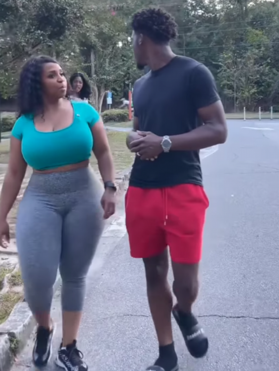 Video počinje slikom mladića i žene koji izgledaju kao da su krenuli na trening. Muškarac je u crvenom šortsu i crnoj majici, dok je žena pored njega u sivim helankama i zelenoj top majici. Ova dama je primetno izraženih oblina, a ogromne grudi gotovo da je jedva upakovala u malenu zelenu majicu kratkih rukava koja otriva go stomak.
