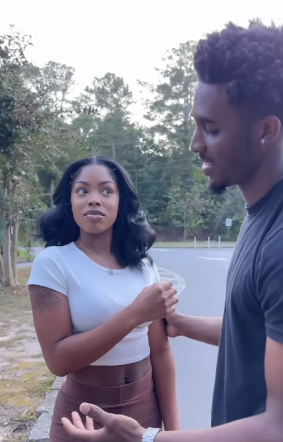 Ona ima diskretnu šminku, dugu kovrdžavu kosu i tetovažu na levoj nadlaktici. Međutim tokom šetnje ovog para iza njih se pojavljuje histerična devojka koja je u vezi sa mladićem. Ona vrišti na njega uverena da je on vara.