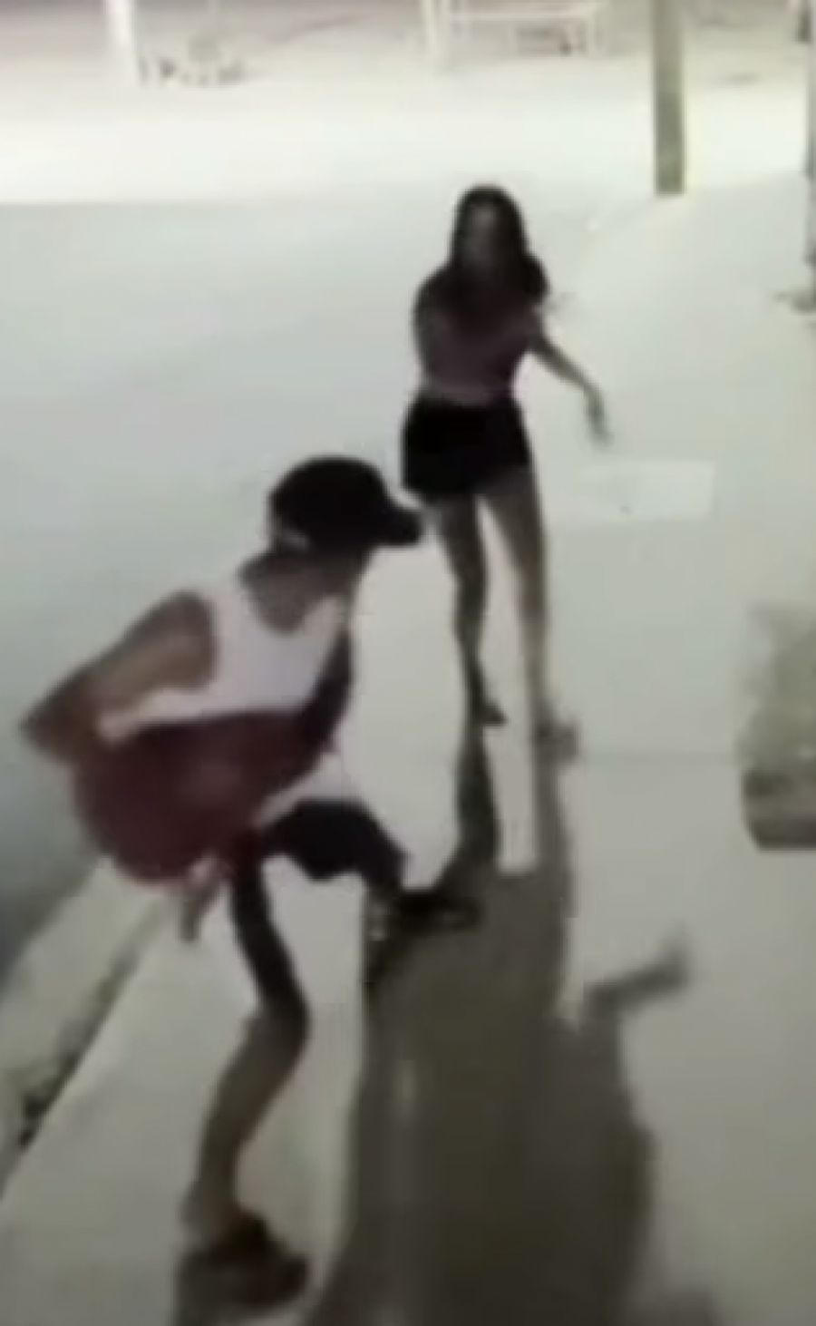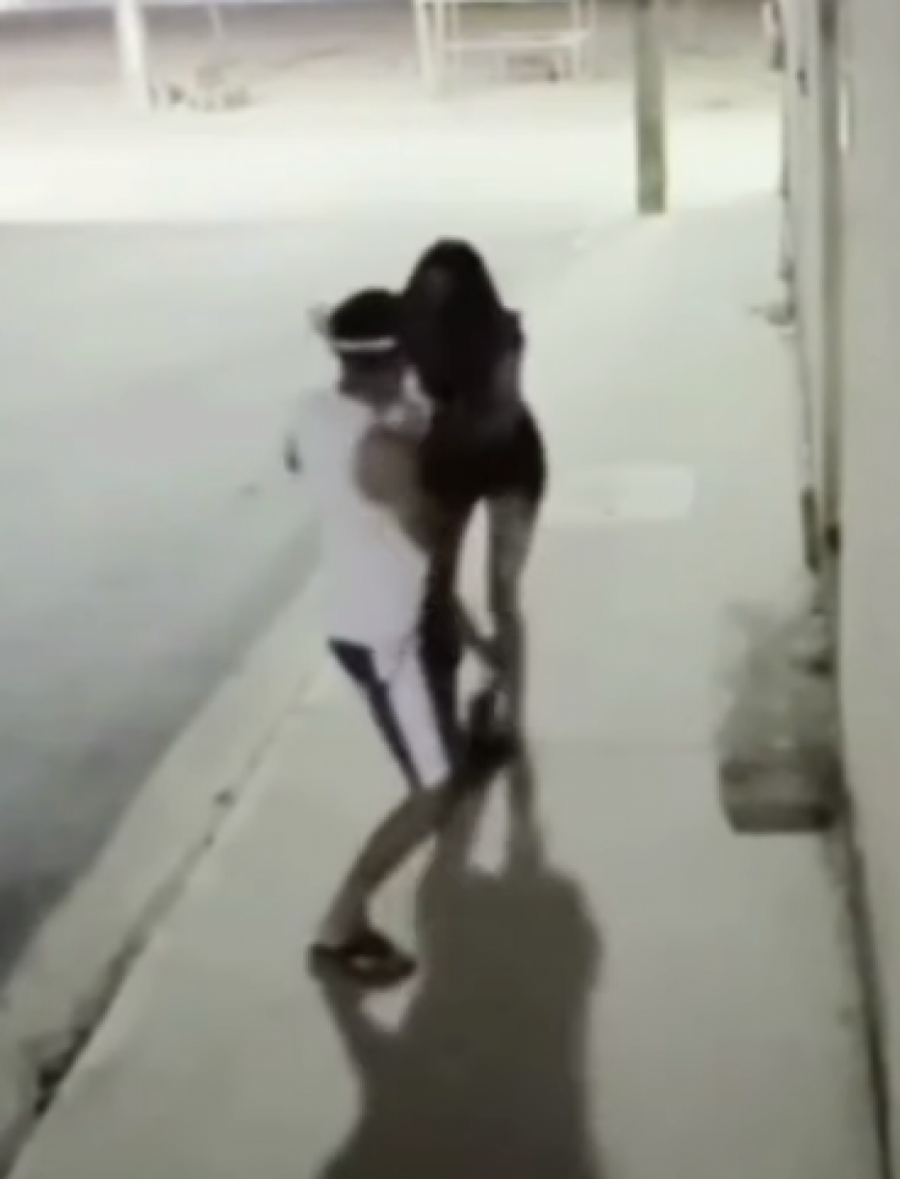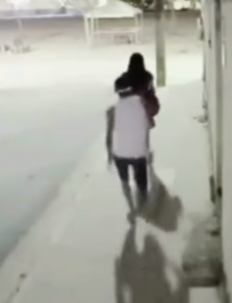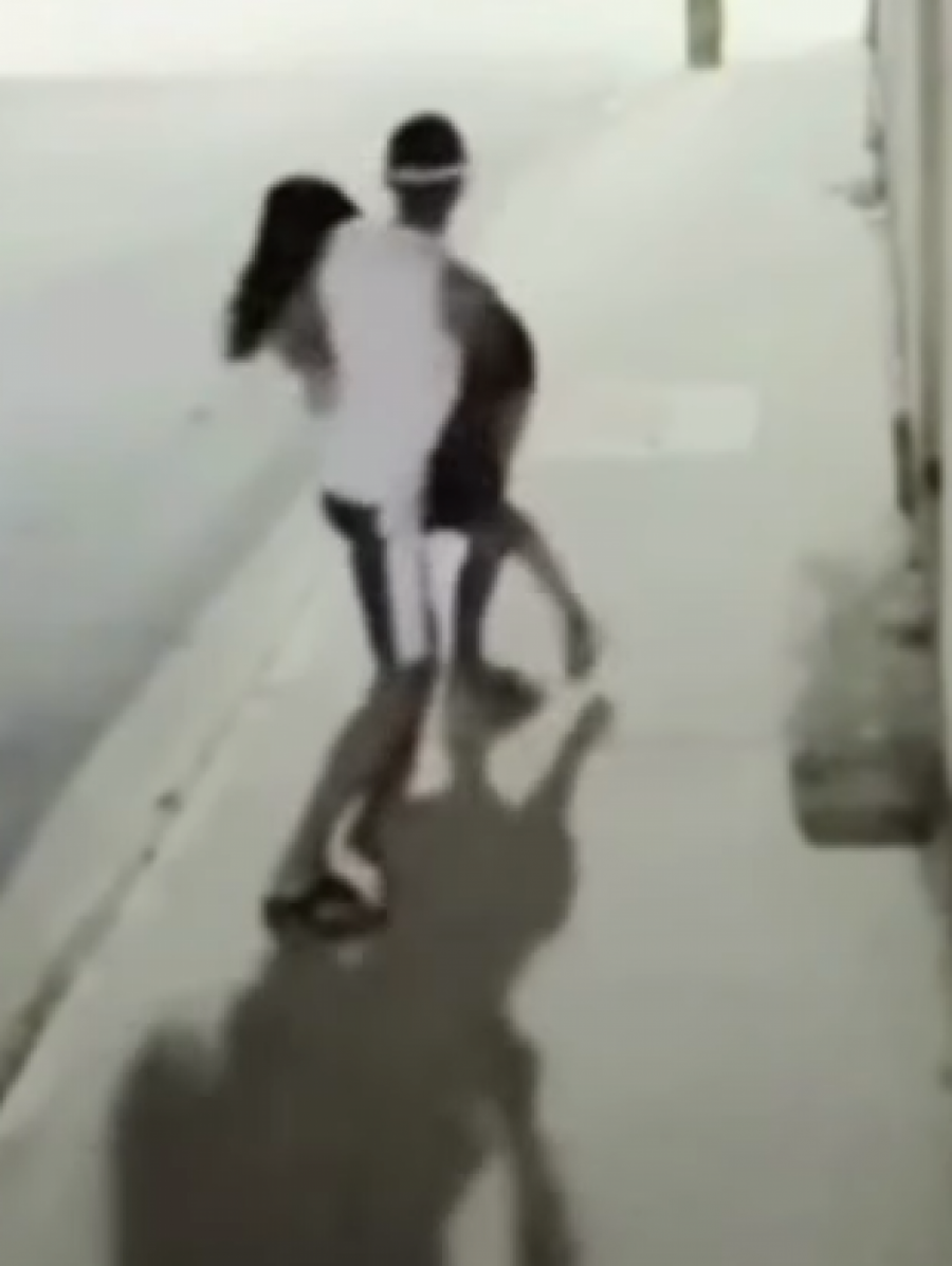 Muškarac koji joj je prišao da je pokrade je njenih godina, a na sebi ima šorts, majicu i kačket. Očigledno je da je jači i spretniji od nje, a izgleda da se nije nadao da će se ona braniti i boriti s njim oko tašne. Situacija je u jednom trenutku čak delovala prilično grubo.