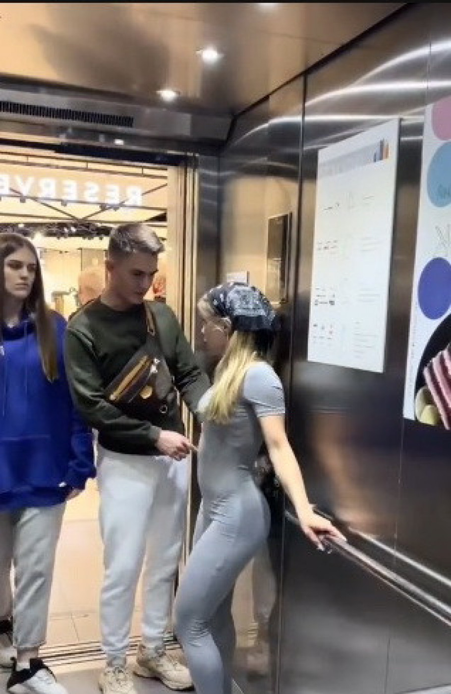 Snimak jednog para podigao je veliku prašinu na društvenim mrežama. U liftu se našao par i jedna provokativno obučena devojka u izazovnom kombinezonz, gde su joj se ocrtale obline, koja se dikretno okrenula leđima paru. Međutim, očigledno je da je svojom pozadinom tek izmamila momku pogled, ali i svima koji su prošli kroz hodnik dok su vrata lifta bila otvorena.