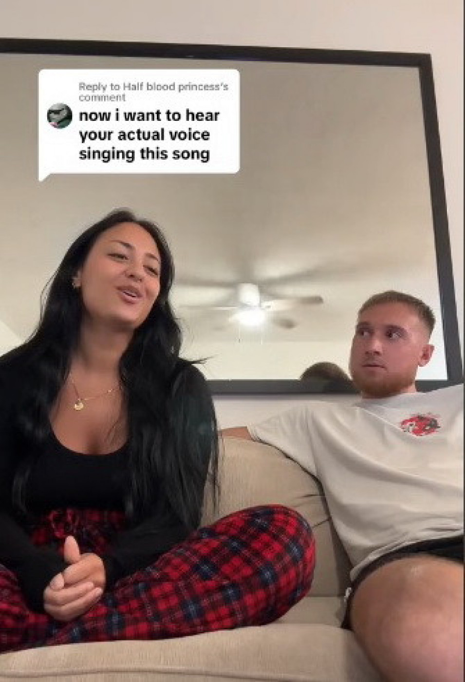 Jednog popodneva dok je njen izabranik opušteno gledao televiziju ona je sela pored njega na kauč i zapevala. Telefonom je snimila njegovu reakciju i podelila je na svom profilu na Tik Toku.