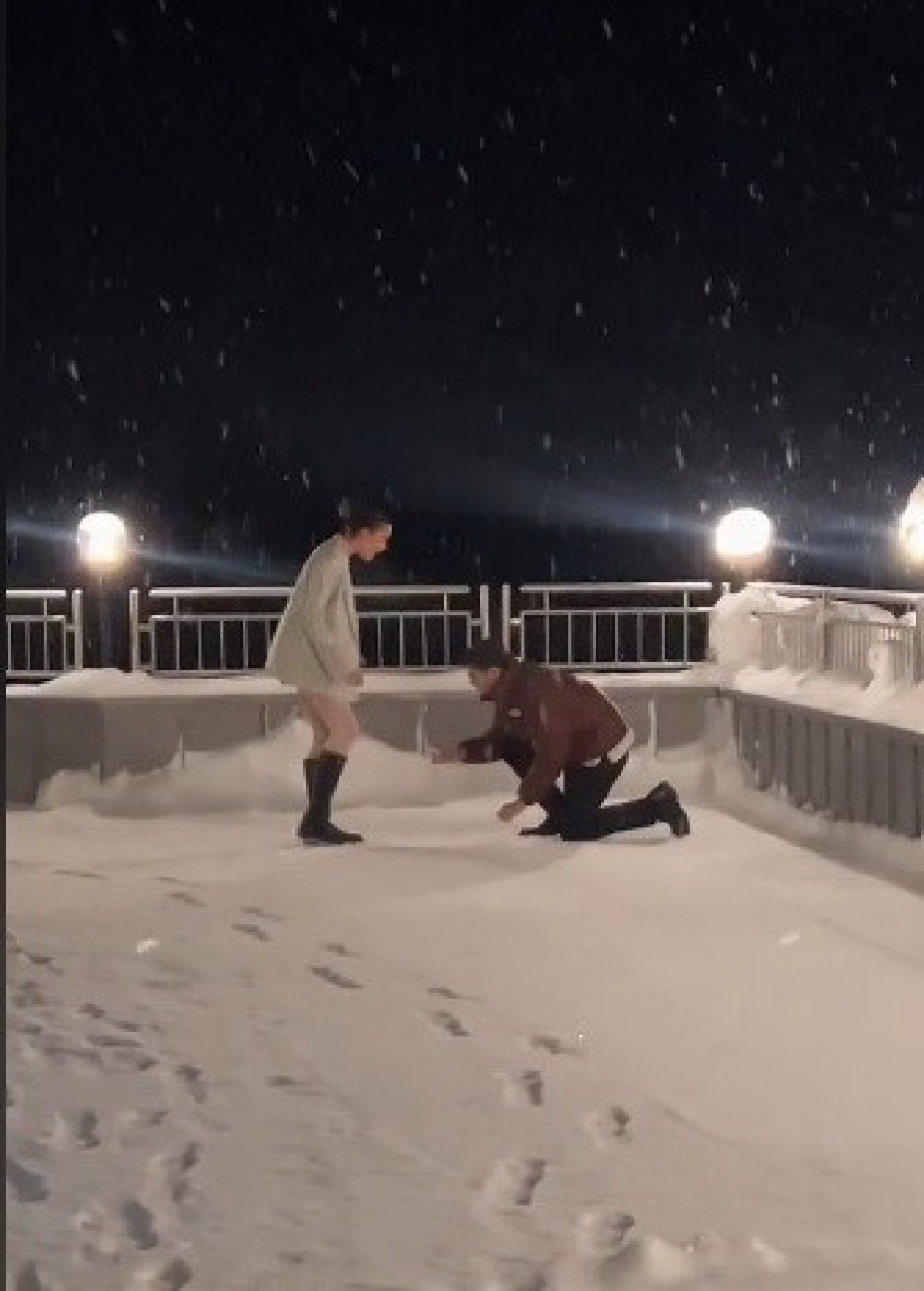 U snimku se vidi kako je bila napolju po snežnom vremenu sa jednim momkom, a on je u jednom trenutku kleknuo pored nje te joj pružio u rukama nešto. Kijara je vrisnula od sreće i počela da skače a onda su dotrčali do kamere koja ih je snimala, kako bi podelili sa pratiocima o čemu je reč. Iako su mnogi očekivali da je rekla "da" ipak je bilo nešto drugo po sredi.