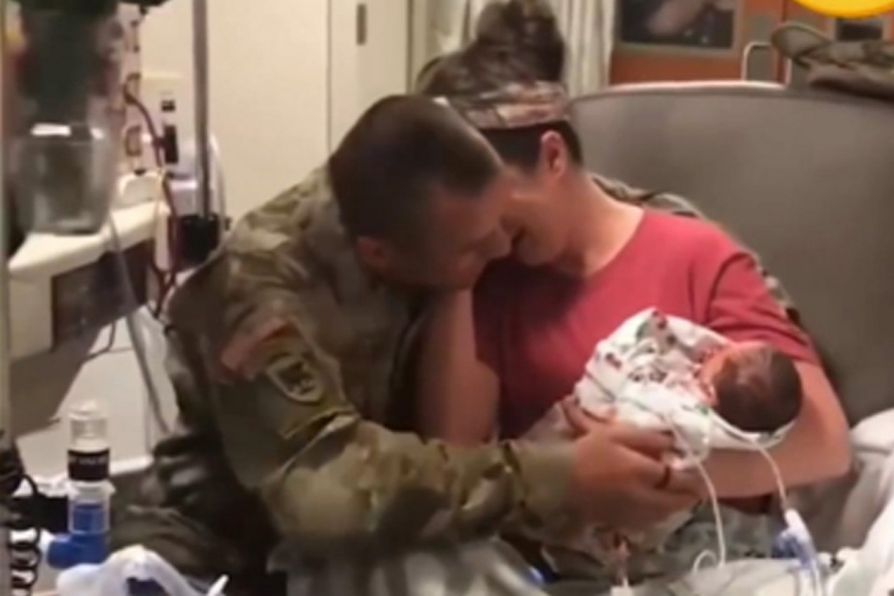Sidni je sedela sa jednom od ćerkica u krilu i gledala u mobilni telefon, najverovatnije je pisala suprugu koji ko zna na kom vojnom zadatku je bio u tom trenutku. Malena devojčica je ipak bila van inkubatora, ali su razne infuzije bile prikopčane za nju. Medicinske sestre bile su oko ove hrabre žene, kada su se vrata sobe neočekivano otvorila, otkrivajući Sidninog supruga u vojnoj uniformi. On je sa sobom nosio buket cveća sa balonima, prišao je i predao cveće voljenoj ženi.
