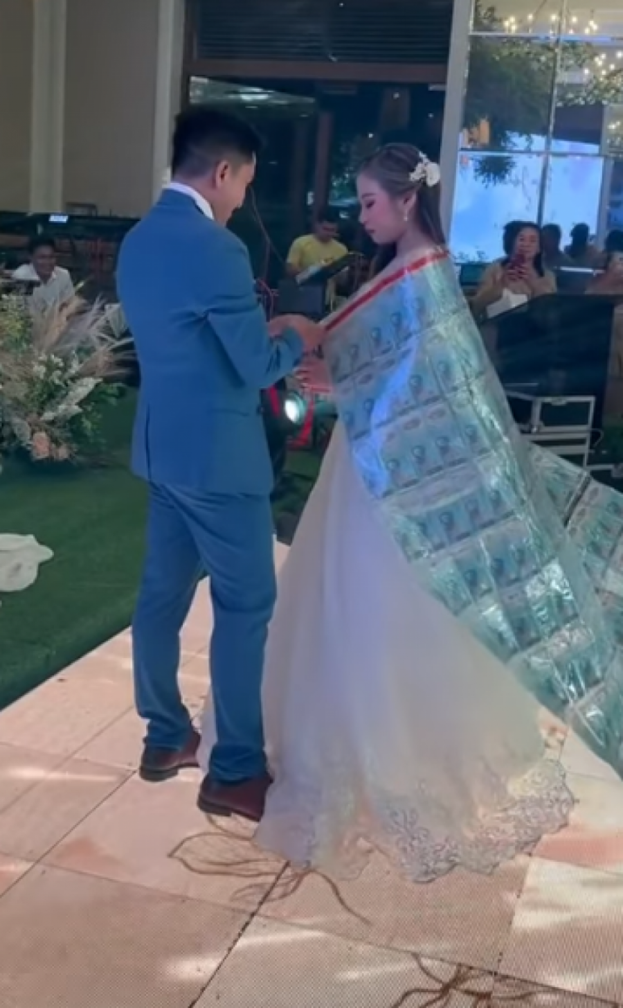 Različite kulture donose različite običaje na venčanjima. Tako je na Filipinima tradicija da mladoženja okiti mladu plaštom u kome je novac. Ovaj običaj predstavlja finansijsko obilje srećnog para i navodno pomaže im da zajedno izgrade snažnu finansijsku osnovu. Snimak jednog takvog gesta privukao je veliku pažnju na društvenim mrežama.