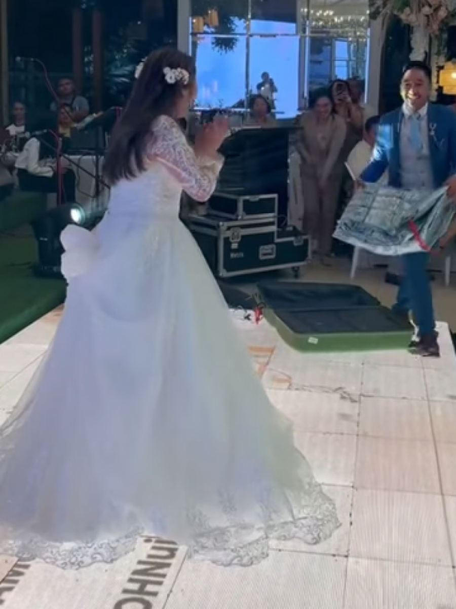Mlada je počela da tapše od sreće, budući da je shvatila šta u tom trenutku sledi. On je iz kofera izvadio providan "tepih", koji je pažljivo razvukao i prostruo po podu ispred neveste. Svi su ubrzo shvatili da nije reč o običnom tepihu, već o jedinstvenom aranžmanu, novčanicama ubačenim u plastificiranu foliju. Tepih od novčanica izgledao je impozantno i blistavo, izazivajući uzdahe i aplauze među zvanicama. Bila je to impresivna suma od 23.000 evra, koja je poklon ovog mladoženje isključivo njegovoj nevesti.