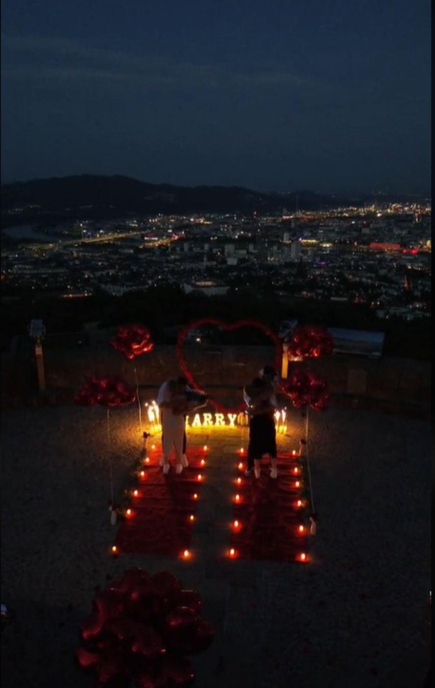 Priprema je započela u popodnevnim časovima. Pripremljena su dva ogromna srca kao dekoracija gde su momci čekali devojke, a put je ukrašen ružama i laticama koje su bačene na put zarad lepše atmosfere. Pored toga pripremili su helijumske balone u obliku srca, kao i natpis "Udaj se za mene". Bajkovit prizor nikoga ne bi ostavio ravnodušnim.