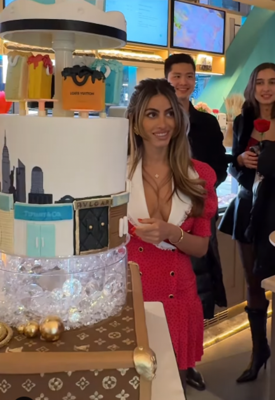 Mladić je angažovao vrhunske poslastičare kako bi izradili tortu na više spratova, svaki inspirisan luksuznim elementima brenda. Prvi sloj bio je u obliku prepoznatljivog LV kofera, sa svim detaljima karakterističnim za ovaj dizajn. Drugi sprat bio je pravo malo remek-delo, torta kružnog oblika sa belom osnovom, preko koje je od fondana izrađen minijaturni Njujork, uključujući prepoznatljive LV prodavnice. Treći sloj bio je elegantna svetloplava torta sa belom mašnom, koja je dodavala dozu sofisticiranosti celokupnom izgledu. Dodatno, između slojeva bile su postavljene upadljive LV kese sa poklonima, čineći tortu još impresivnijom.