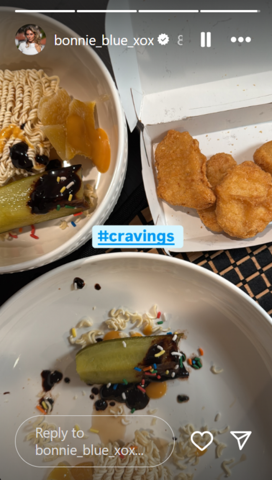 Ona je, naime, na svom Instagram storiju podelila fotigrafiju na kojoj se vide ostaci pojedenih kiselih krastavčića (omiljena hrana trudnica) za kojima žudi čime je nagovestila da je, možda, u drugom stanju? nakon ove njene objave društvena mreža X (nekadašnji tviter) je eksplodirao od spekulacija da li je trudna i što je još važnije - s kim.