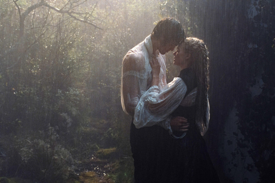 Na početku filma, Hitklif i Keti razgovaraju na kiši ispred Orkanskih visova. Stojeći svega nekoliko centimetara od muškarca za kog sebi još nije priznala da ga voli, Keti štiti oči od kiše držeći ruke ispred čela.