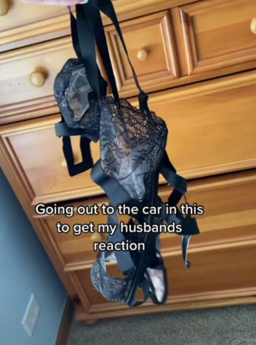 - Pogledajte seksi veš koji sam kupila da bih iznenadila svog muža! Da bi iznenađenje bilo veće, upašću mu u auto u ovome - priča Lin dok pokazuje jednodelini bodi od crnog tila.
