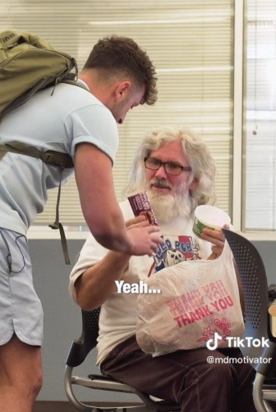 Nakon što mu je gospodin rekao kako ga ne čuje i da ponovi, otkrio mu je da nema novca pored sebe ali da ima nešto od hrane u kesi te da će rado podeliti.