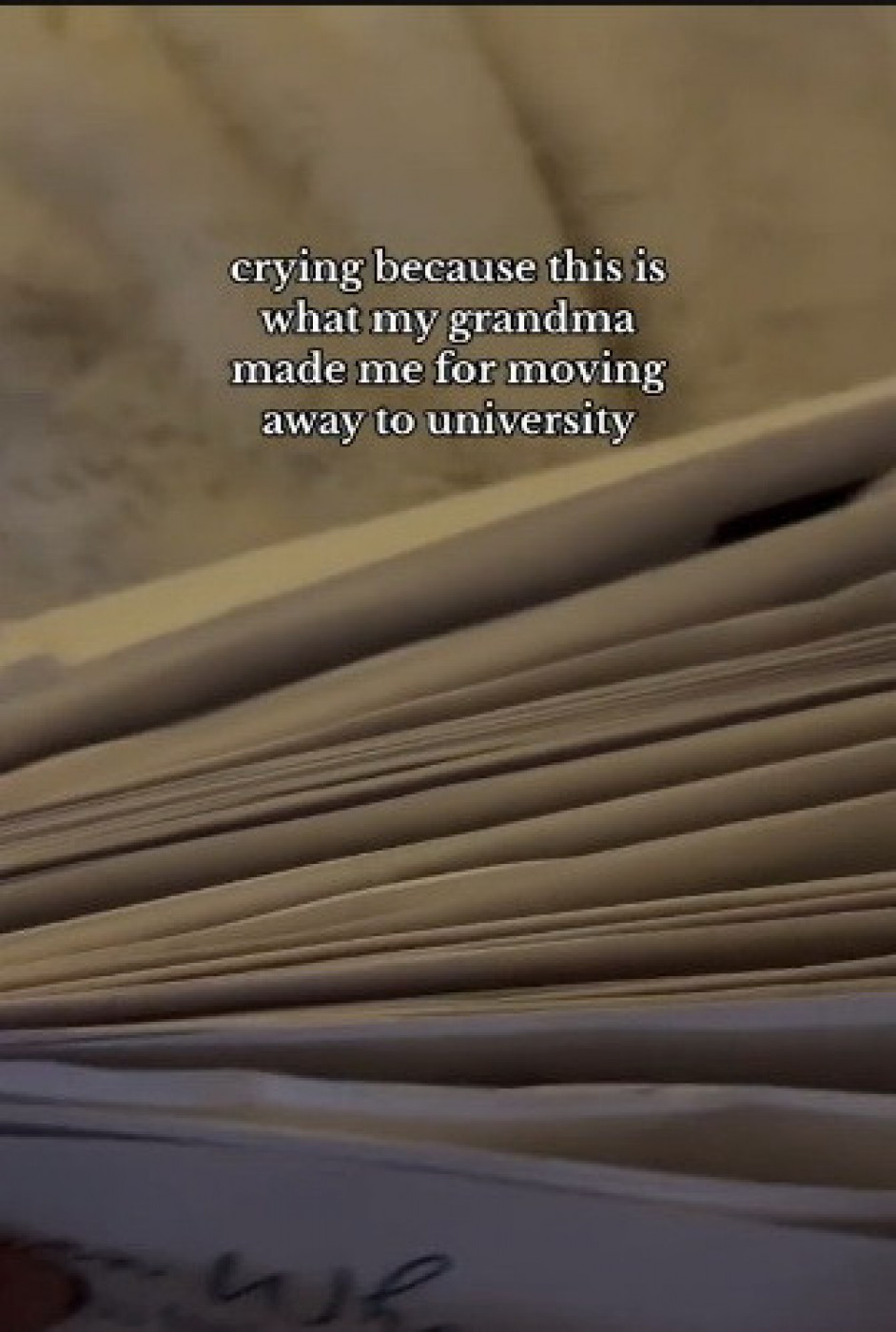 Tiktokerka je u opisu objave napisala "plačem jer je ovo moja baka spremila za moj odlazak na Univerzitet", pokazavši mnoštvo neotvorenih pisama. Kako ih je listala, svaki je imao svoju namenu i na njemu je pisalo "otvori kada si bolesna", "otvori kada ne možeš zaspati", "otvori kada ti treba zagrljaj..".