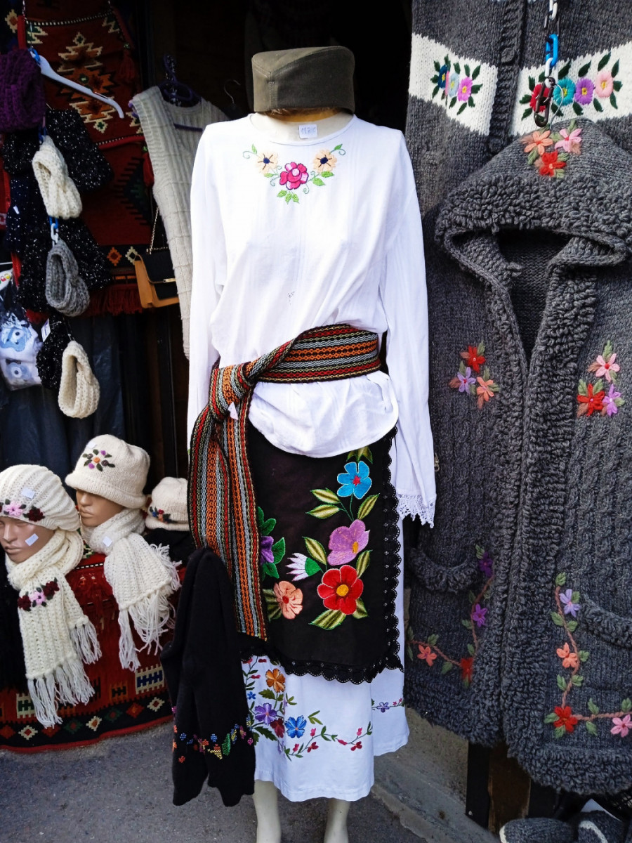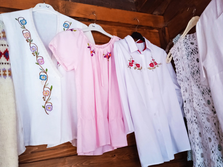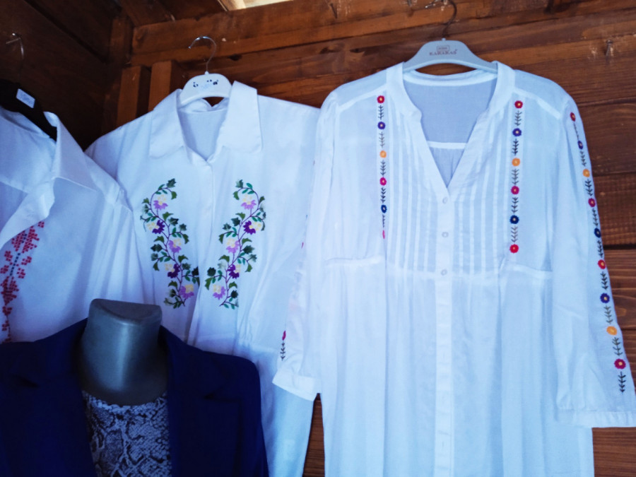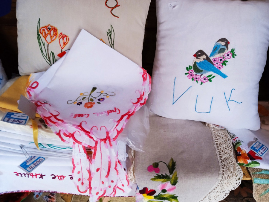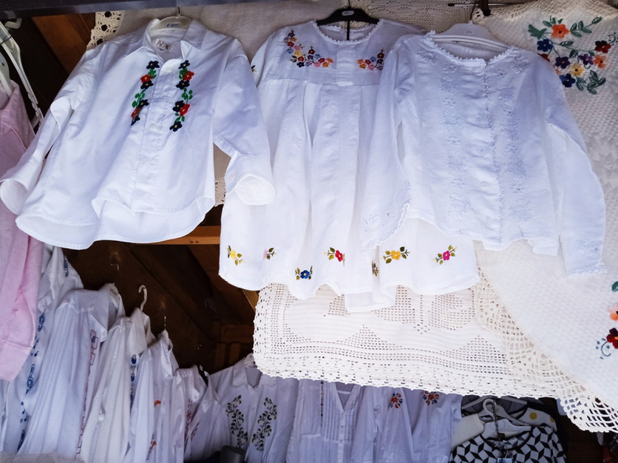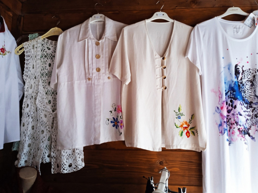 Na njenoj tezgi šarenilo je boja tako da se ne zna gde pre da se pogleda. Pažnju su nam privukle bele, pamučne košulje ručno vezene raznobojnim cvećem. Nekada su bile neizostavni deo srpske narodne nošnje. Posebno cenjen je beli vez koji retko koja danas retko koja, mahom starija žena, još radi.