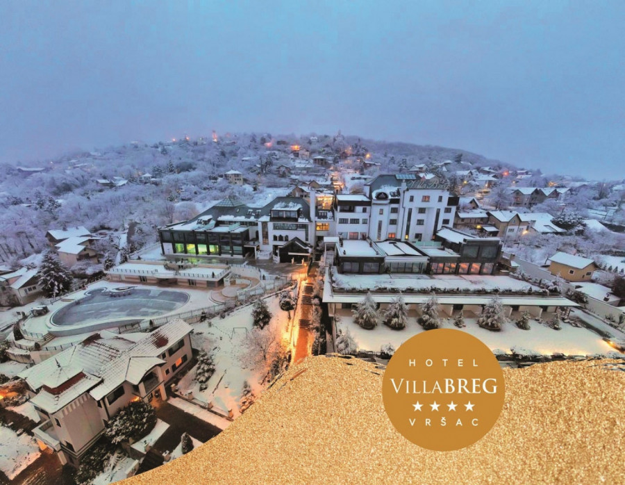 Na Vršačkom bregu odakle puca pogled na čarobne predele banatske ravnice nalazi se hotel Villa Breg. Sofisticiran, elegantan i raskošnog enterijera, ovaj hotel je posebno magičan u vreme novogodišnjih praznika. Unutrašnjost hotela čine komforne sobe i apratmani, restoran, kamin bar i Spa centar sa sadržajima na svetskom nivou.