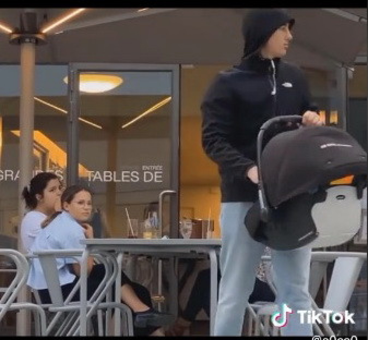 Mladi muškarac ušetao je u baštu jednog kafića noseći bebu od tek nekoliko meseci u auto sedištu, popularno nazvanom jaje, pa ju je na kratko ostavio na stolu kako bi zatražio nešto od osoblja. Bio je siguran da je tu potpuno bezbedno budući da je u kafiću sedelo dosta ljudi, pa je opušteno ostavio dete. Istovremeno on je razgovarao telefonom, ali je dok je odmicao od bebe bacao pogled na njega kako bi ustanovio da je zaista sve u redu. Samo što je zamakao kroz vrata kafića kod njegovog stola se pojavio nepoznati muškarac u crnom, s navučenom kapuljačom na glavi, koji je pogledao bebu, a onda samo nonšlantno pokupio korpu sa njom.