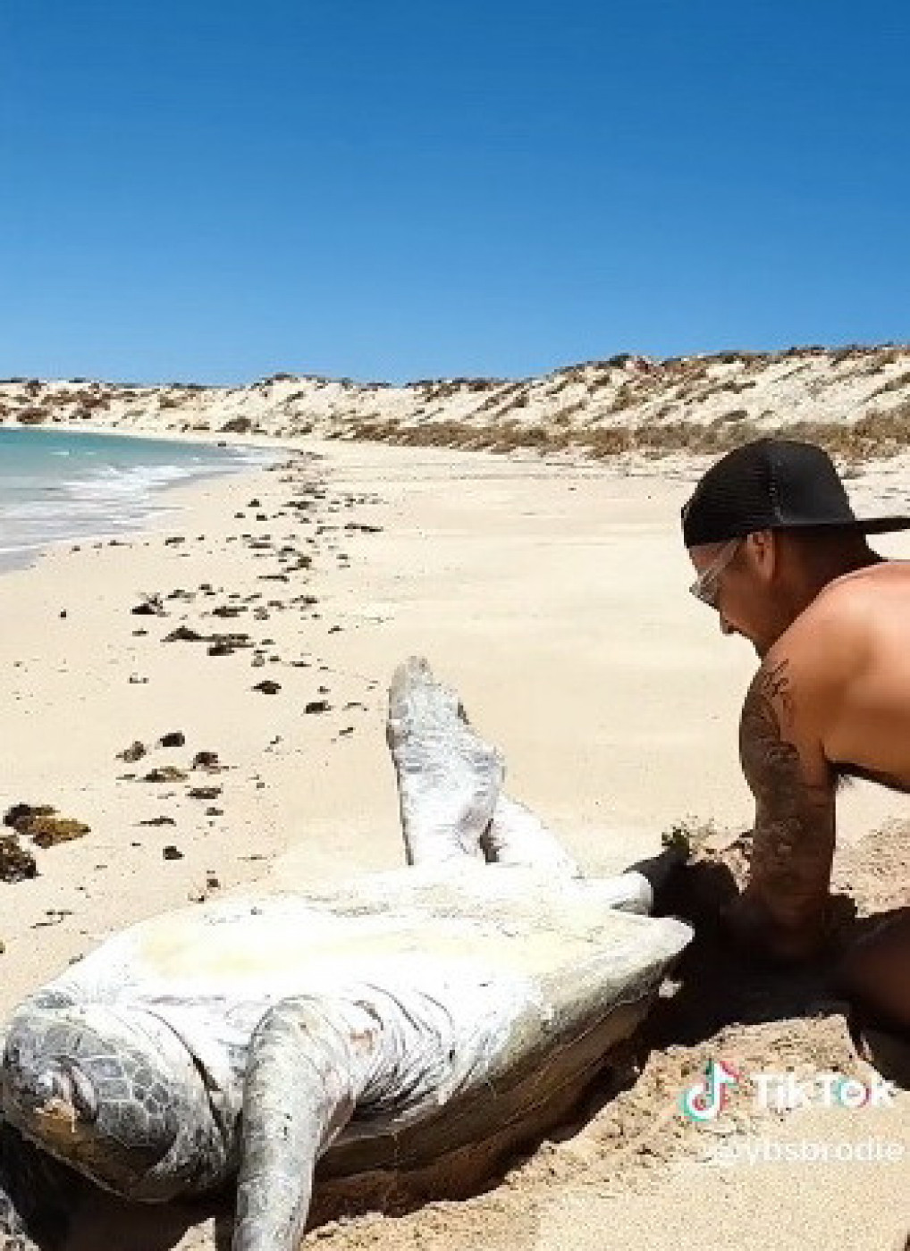 Na plaži je zapazio džinovsku kornjaču koja se nasukala na obalu. Trenuci su je delili od sigurne smrti na užarenom pesku i pod vrelim sunčevim zracima. A onda je usledila neverovatna akcija.