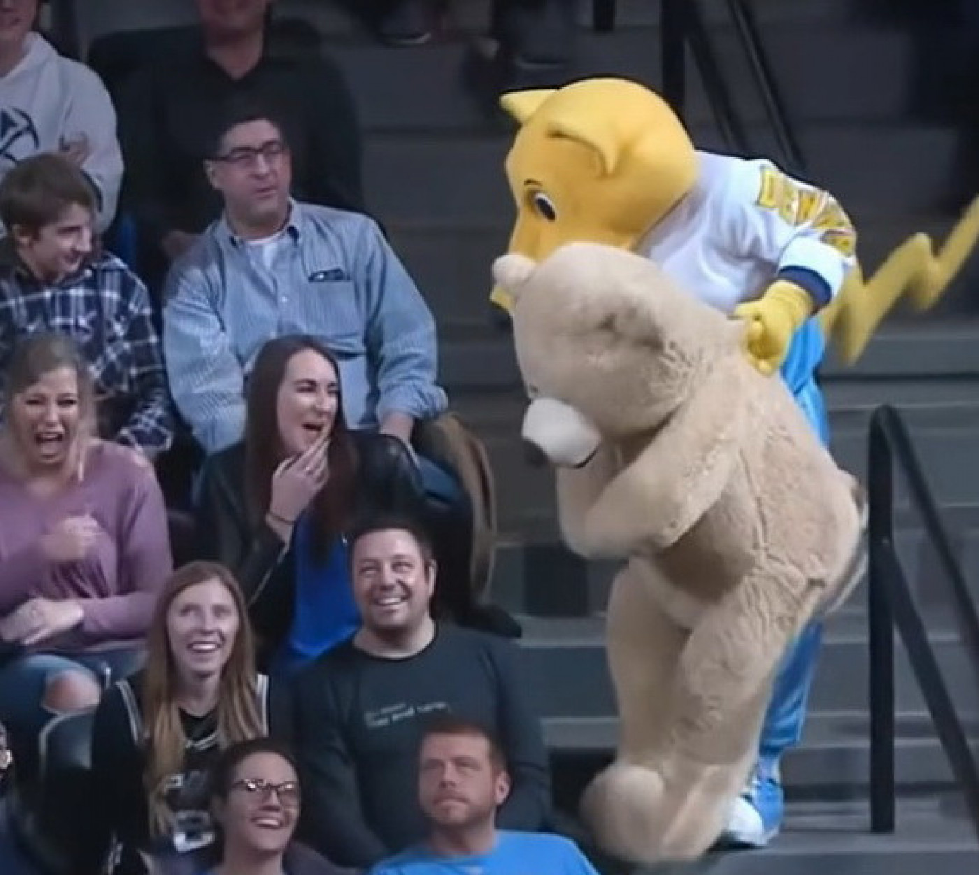 Animator je na kraju odlučio da i tog meddveda otrgne iz krila devojke, pa joj doneo toliko veliku lutku da nije mogao sam da je nosi, već mu je u tome pomagao još jedan radnik obezbeđenja. Bacio je novog medveda preko devojke i njene drugarice, verujući da će je to definitivno fascinirati. Međutim, on je nesrećne devojke bukvalno poklopio i ostavio ih bez daha, budući da se na snimku vidi da nisu uspevale da se izvuku ispod gigantske plišane lutke.