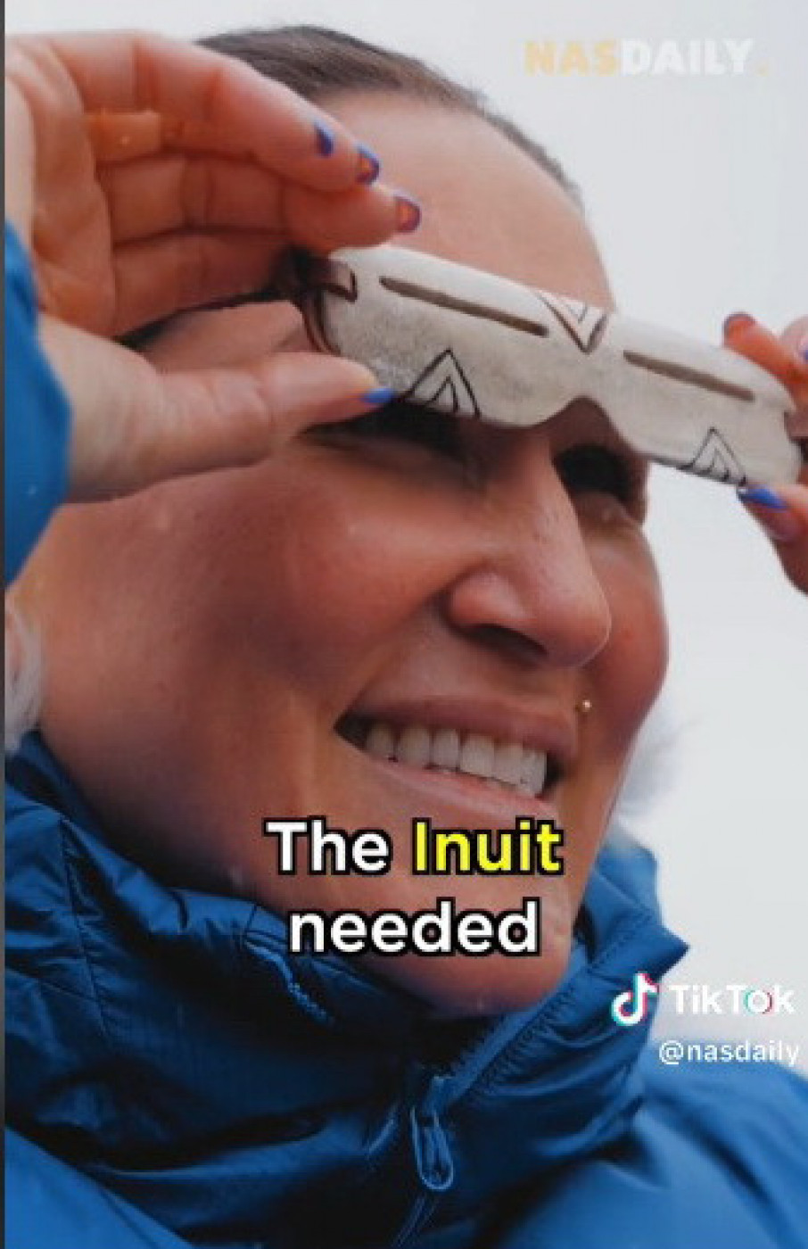 Stanovnici Grenlanda su poznati kao Inuiti i imaju jedinstven izgled, zbog snega koji je tamo prisutan tokom cele godine. Hiljadama godina ovaj narod je okružen belim prekrivačem, a istraživanje je pokazalo da ono za njih može biti i opasno bez obzira što opstaju u tim uslovima. To se najčešće odnosi na ljudske oči, pogotovo ako po ceo dan pešačite po snegu, može reflektovati previše sunčevih zraka u vašim očima, što može prouzrokovati bol. To je poznato kao "snežno slepilo". Zbog toga ovdašnji narod mora da zaštiti svoje oči od te pojave, koristeći prve sunčane naočare tog tipa koje su oni izmislili.