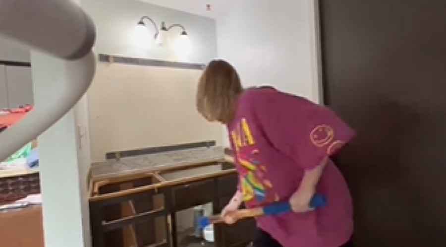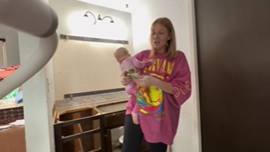 Ona se na TikTiku predstavlja kao Mama Pres, a objavila je snimak koji je u trenu postao viralan. Ona je rešila da krene sa renoviranjem kuće od kupatila i da sve to snima. Počela je da uklanja stare daske od ormarića ispod lavaboa i ubrzo shvatila da je jedna od njih očigledno planski stavljena tako da se teško vadi. Posle više pokušaja da to učini golim rukama, ona je odustala i otišla po čekić.