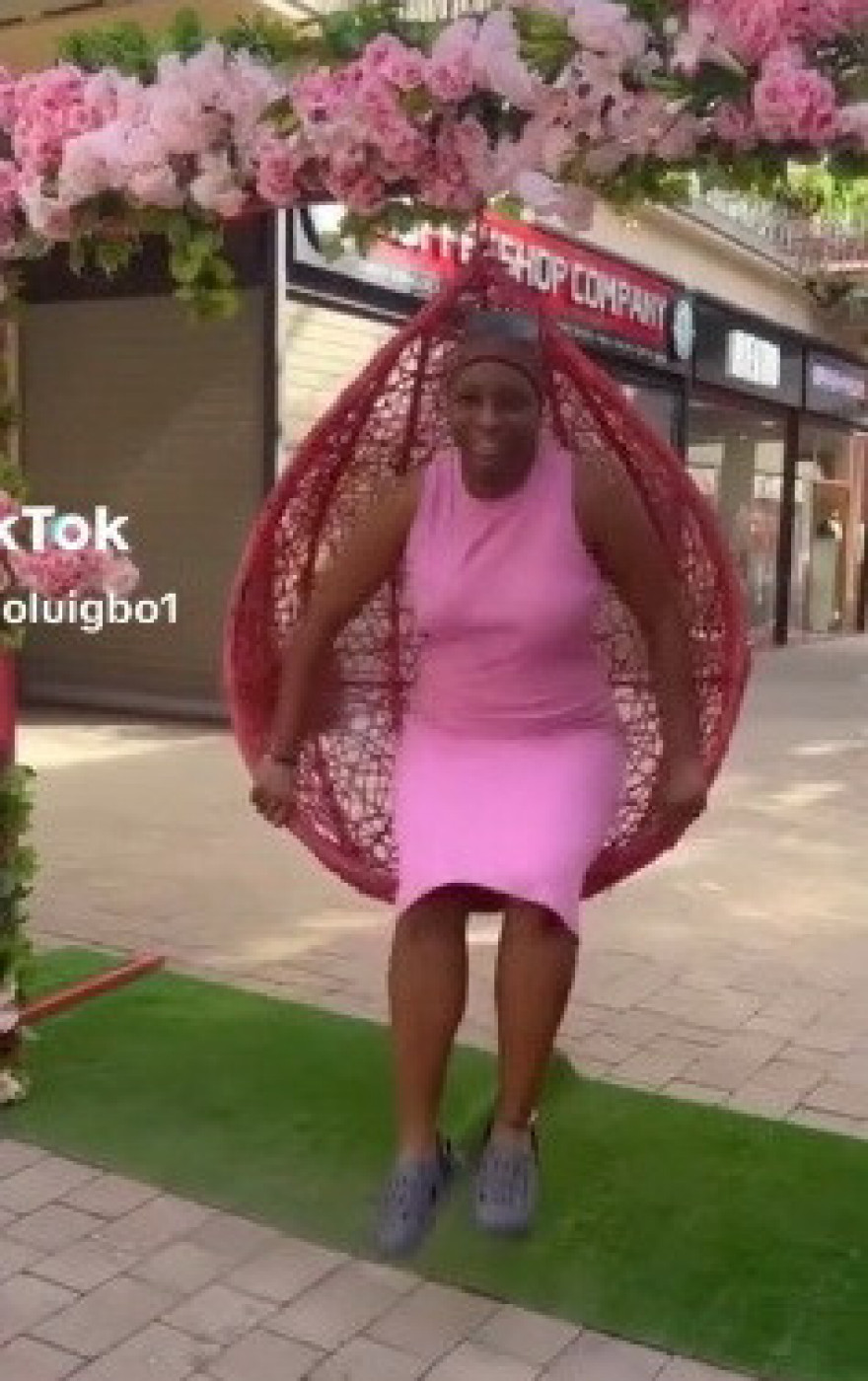 Budući da je ljuljaška bila visoko, žena je iskoristila priliku da skoči kako bi se dočekala u prekrasnoj lepoj ljuljašci i opuštenosti koju ona pruža, međutim, samo što je sela na nju, težina je povukla celu ljuljašku i dekorativni ram na kojoj je ona bila pričvršćena i oborila ju je na zemlju. Kako je pao veliki ram, ljuljaška je ženu poklopla na zemlji.