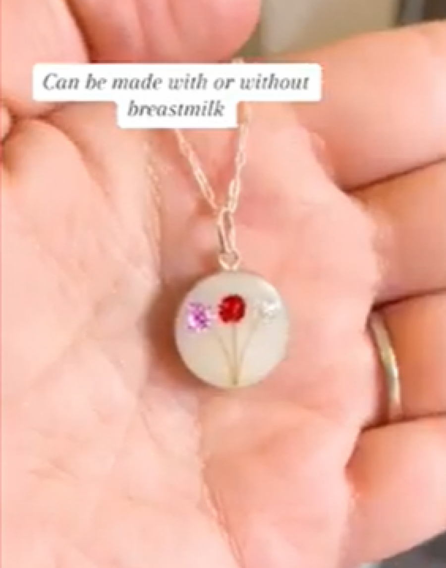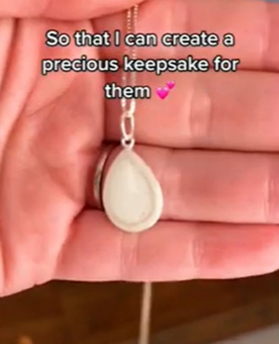 Rejčel je videla nakit koji se pravio od majčinog mleka. To joj se tolko svidelo da je želela da napravi jedan privezak koji će nositi na ogrlici samo za sebe.