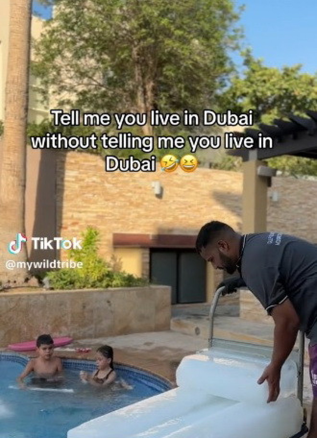 U opisu objave gde otac ubacuje led da rashladi vodu piše "reci mi da živiš u Dubaiju, bez da mi kažeš da živiš u Dubaiju.."