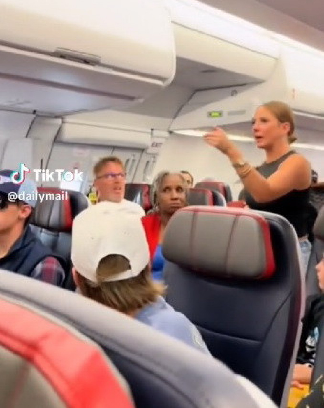 Jedna izbezumljena mlada žena je s kraja aviona krenula ka vratima želeći da napusti letelicu tvrdeći da se iza nalazi nešto "što nije realno" i kako će svi umreti. Žena se obraćala nekoj osobi uvredljivim jezikom i pokazivala ka kraju aviona. Rasplakana i vidno pod stresom, sve vreme je vikala i upozoravala putnike da ona ne želi ni trenutak da ostane u avionu i da želi da ga napusti.