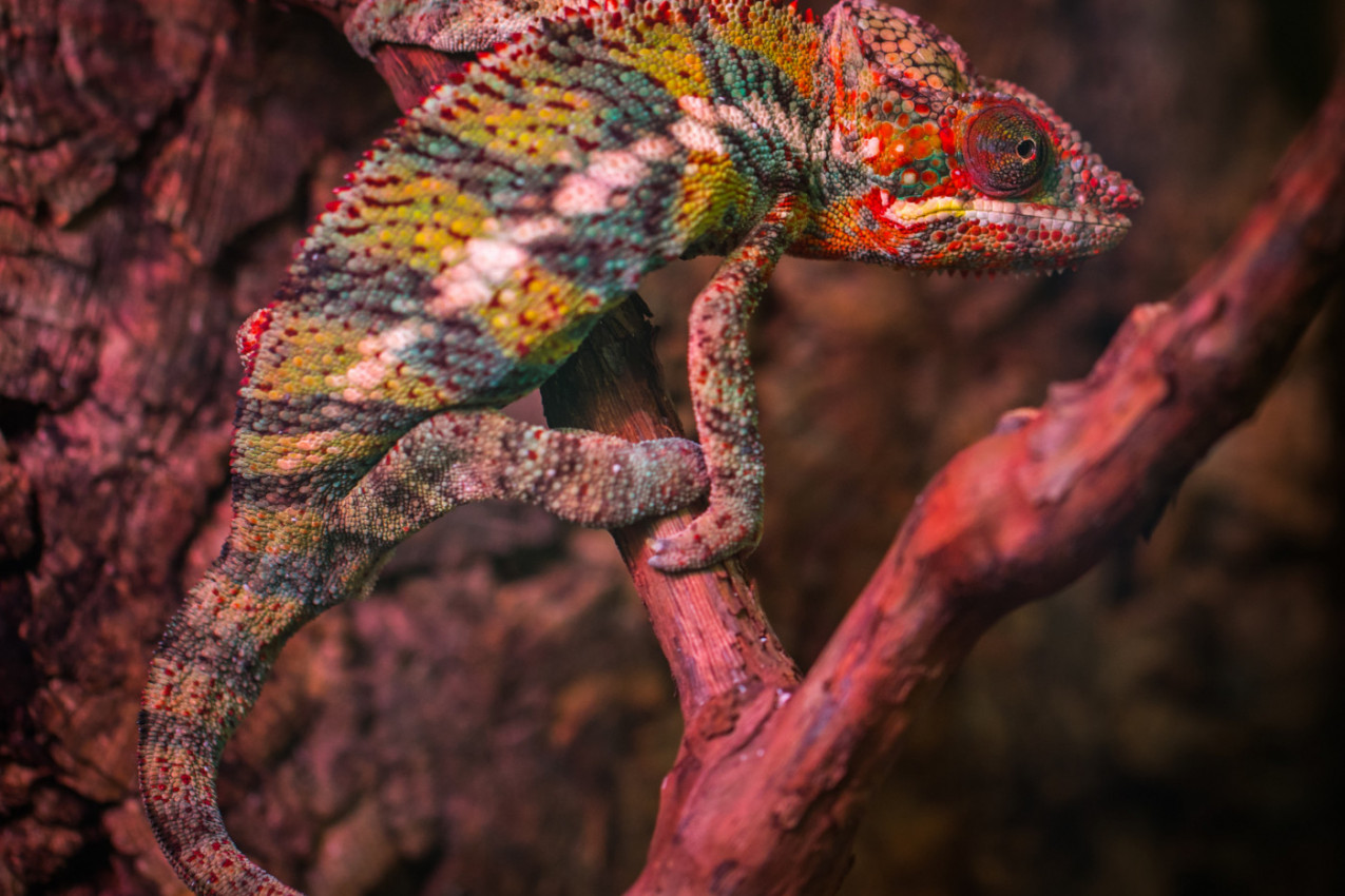 Kameleon ne menja boje da bi se lakše prilagođavao sredini, već je to uslovljeno njegovim raspoloženjem, temeparturom, zdravljem i komunikacijom sa ostalim životinjama. Nemaju sve vrste ovako razvijenu sposobnost i mogu da menjaju samo tri boje: zelenu, sivu i smeđu, dok ima vrsta čiji je spektar boja mnogo veći, među kojima su ružičasta, crvena, tirkizna, narandžasta i mnoge druge.