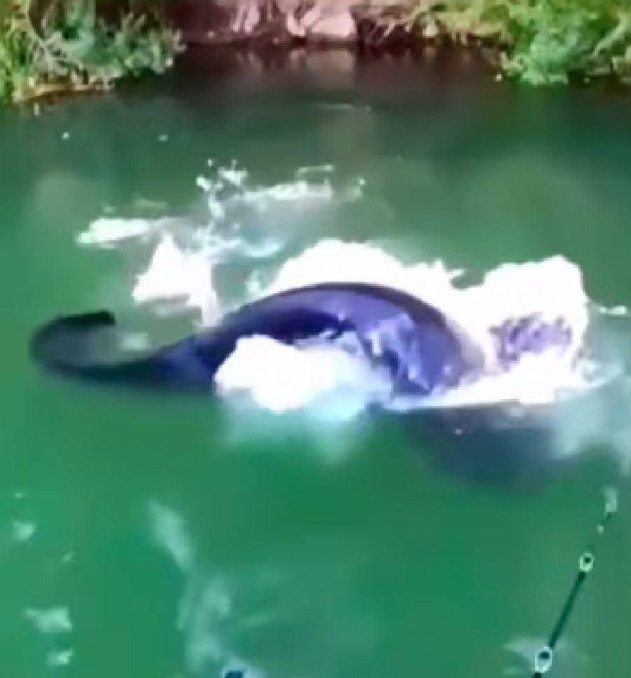 Pecaroš je vrisnuo od iznenađenja očigledno potpuno nespreman za ogromnu ribu koja je izronila iz dubine. Riba je kao od šale pokidala najlon, udicu i da nije bilo snimka koji je sa broda napravio pecaroš niko mu ne bi verovao sa kakvim vodenim čudovištem je imao posla.