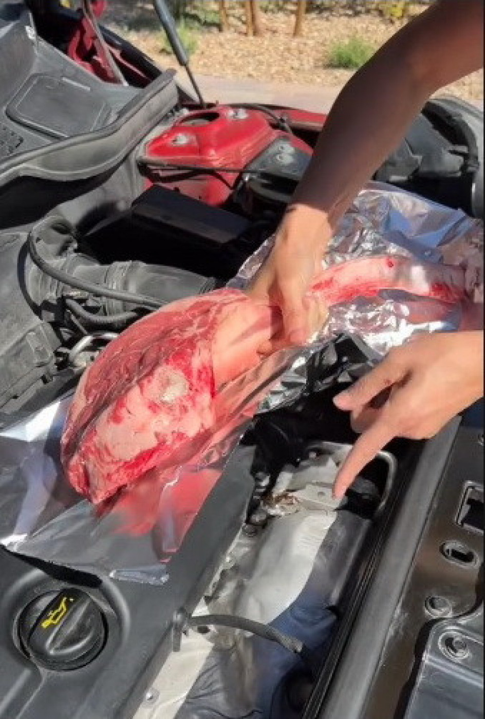 Naime, ona je jedan od najukusnijih komada mesa stavila na motor svog Mini Kupera, posula ga biberom i uvila u foliju. Spustila ga je na haubu automobila i ostavila da se peče na temperaturi od 41 stepen, što to je bila temperatura autobmobila u tom momentu.