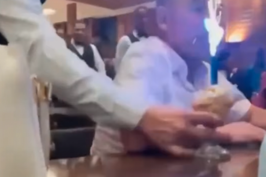 On je najverovatnije bio daleko u svojim mislima kada je primetio vatru tik ispred lica. Konobar je brzo, kako bi bio što veći efekat iznenađenja, stavio kolač sa upaljenim vatrometom na sto ispred slavljenika. Međutim, ovaj čovek je videvši samo vatru pred licem, instinktivno zamahnuo rukom i odbacio kolač. Nije stigao ni da registruje da je to zapravo bio kolač. Međutim, ni tu nije bio kraj.
