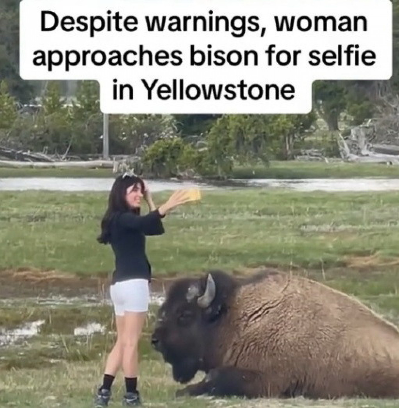 Naime, Tiktok mrežom kruži viralni snimak, koji će mnogima zalediti krv u žilama. U jednom zoo parku usnimljena je mlada žena kako stoji na korak od ogromnog bizona koji leži i odmara, dok ona pokušava da napravi selfi sa njim. Iako su zvaničnici tog parka izdali upozorenje posetiocima da se ne približavaju bizonu niti bilo kojoj divljoj životinji, devojka je nonšalantno stala pored njega i dovela svoju sigurnost i život u pitanje.