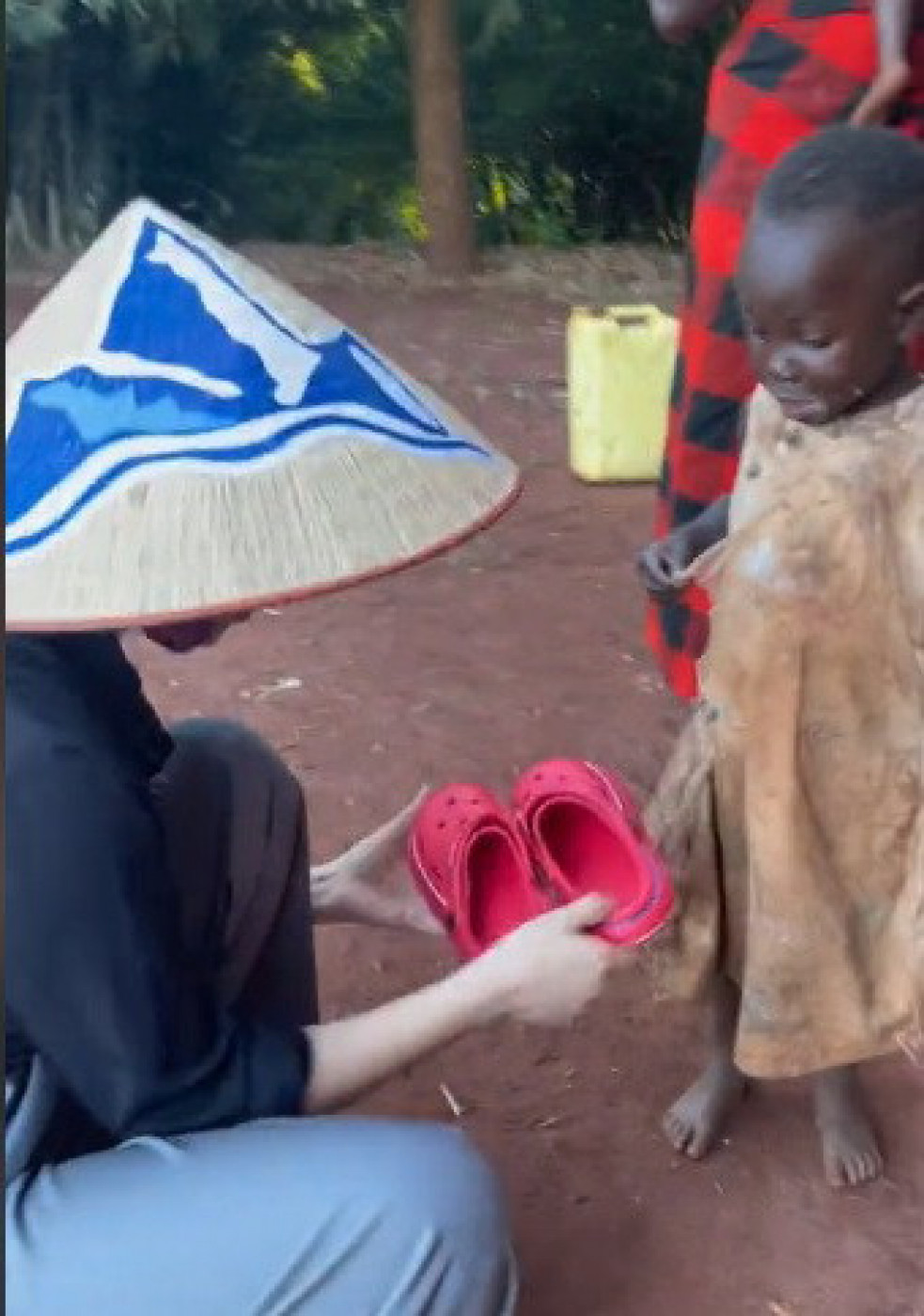 Onako bosa i u poderanoj obući došla je u susret sa jednom menadžerkom i humanitarkom iz Azije koja je iz kese izvadila par kroks papuča u roze boji poklonivši joj ih. Devojčica je razgoračila oči ne verujući u to što vidi, a onda je navukla papuče na svoja stopala iako su one bile za par brojeva veće.