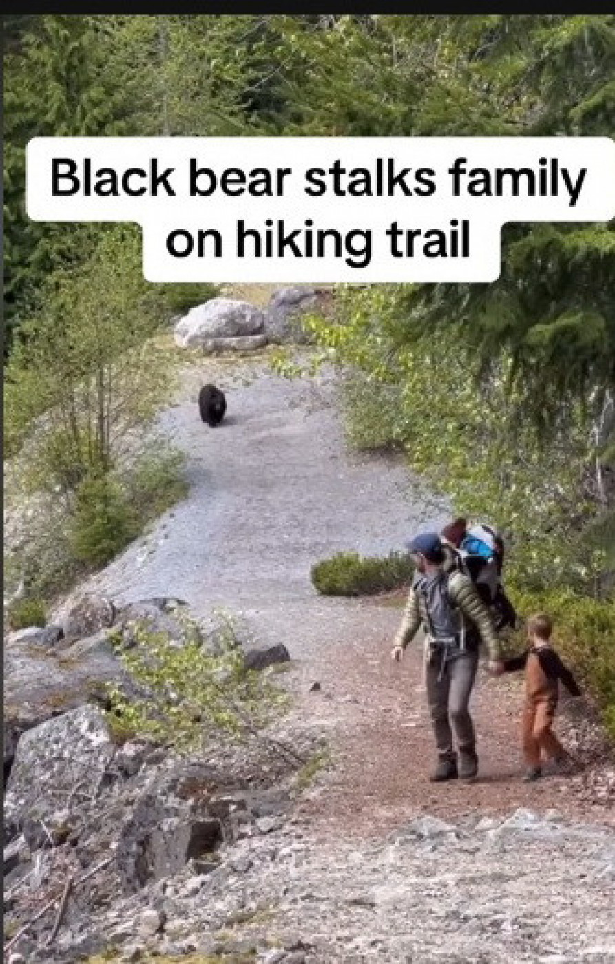 Porodica je ubrzala korak, a u snimku se čuje majka koja pokušava da smiri starijeg sina , sugerišući mu da ne trči i ne pokazuje strah. Žena je sve vreme snimala prilično zastrašujuću scenu iako je porodica pokušala da ostane pribrana. Kako su zalazili u šumu i povremeno se okretali da bi proverili da li je medved iza njih, i mada su odmakli dalje, životinja je išla ka njima dok se ženi na licu video strah na licu iako je pokušavala da ga prikrije osmehom.