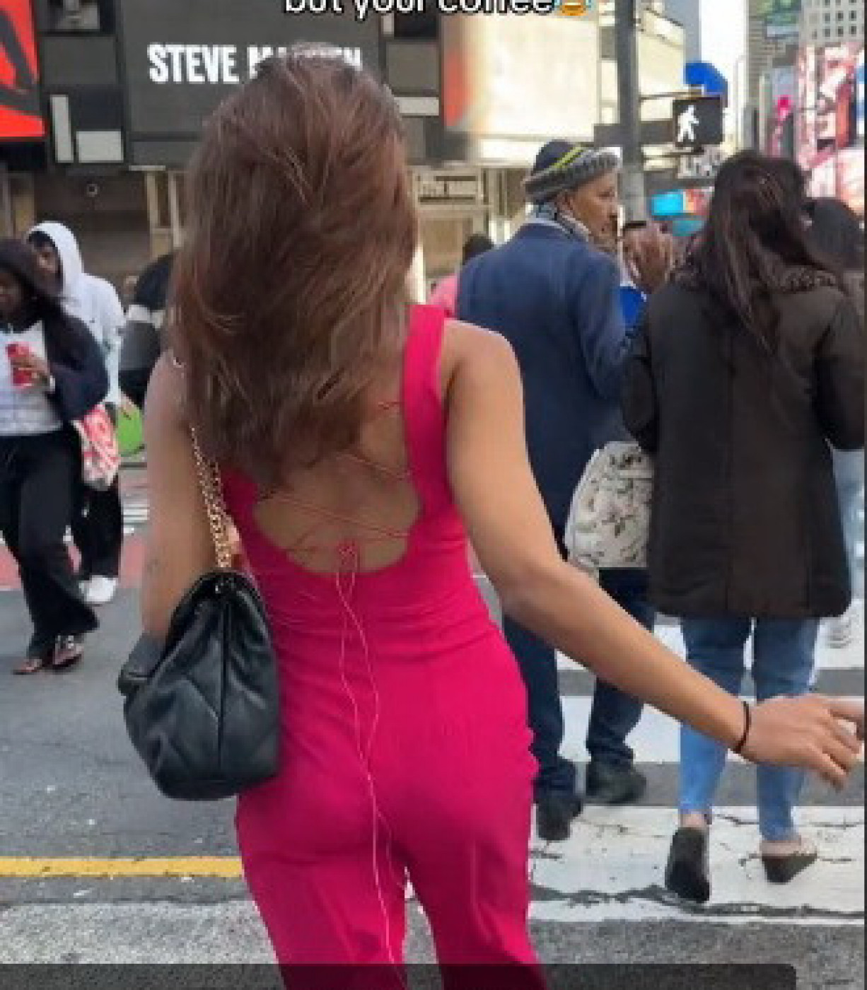 Jedna španska influenserka koja je poreklom iz Indije prošetala je ulicama Njujorka sa kafom u ruci želeći da ovekoveči taj trenutak. Ipak, dok je skakutala u roze kombinezonu, ova atraktivna brineta je pokušala na pešačkom prelazu ispred Tajms Skvera da napravi piruetu odnosno okrene se ka snimatelju, međutim, okliznula se i pala na zemlju.
