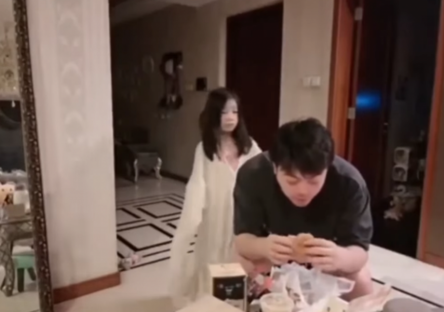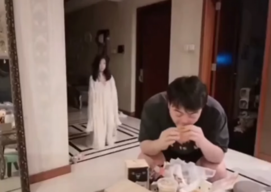Čovek koji jede prestravljeno je skočio kad je osetio da ga s leđa grle malene ruke u dugim rukavima koji se vuku po zemlji, a situacija se nije promenila ni kada je video ćerkino bledo lice i tamnu kosu preko njega. Muškarac je tako maltene sa zalogajem u ustima pao sa stolice od iznenađenja, ali tu nimalo nije bio kraj - kulminacija je tek usledila.
