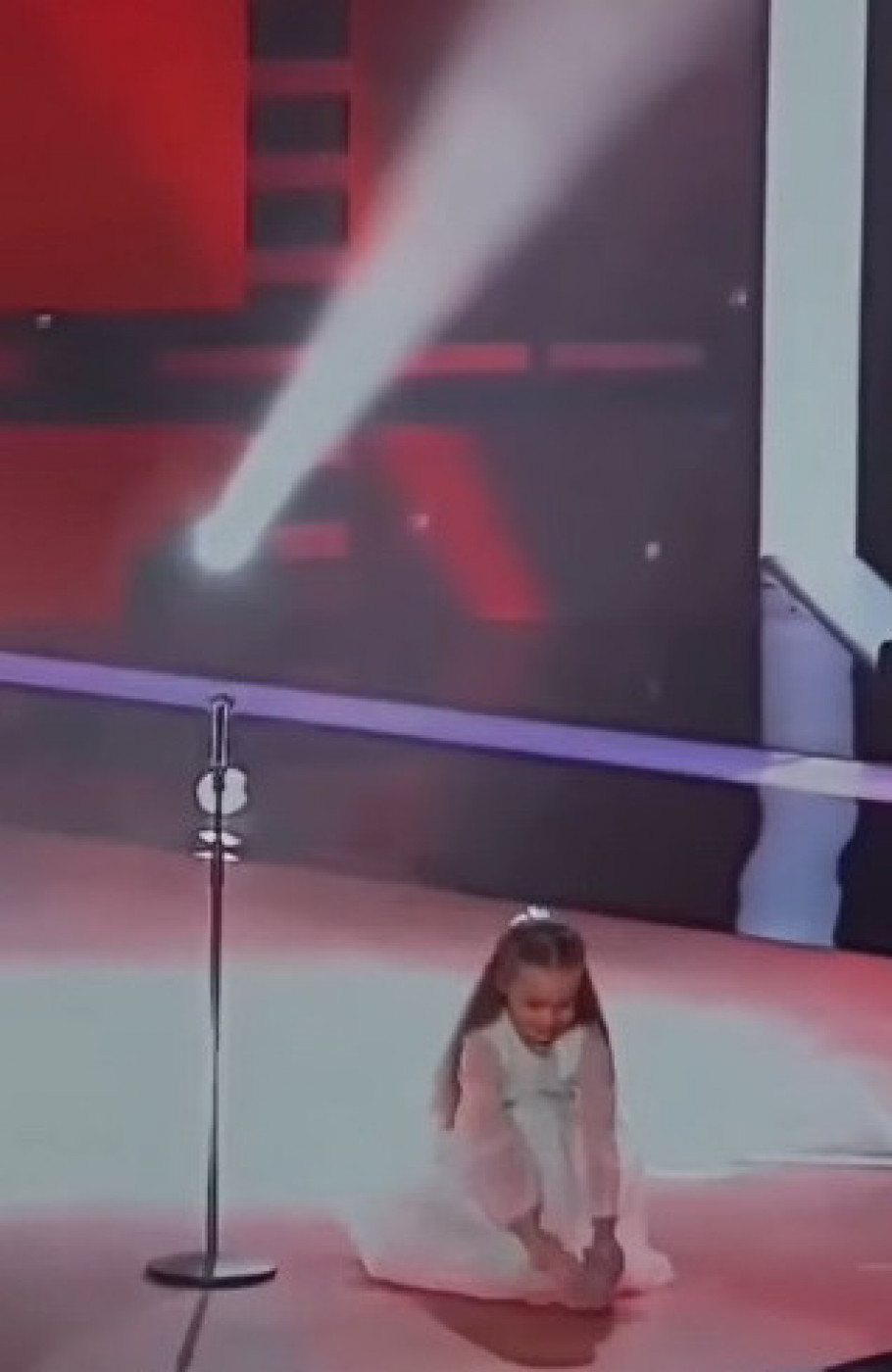 Poput slavuja, devojčica je pustila glas, a jedan od članova žirija je oduševljeno okrenuo stolicu ka njoj i gledao ju je hipnotisano dok su drugom zamalo naišle suze na oči. Preslatka devojčica je pevala iz srca, dok su je roditelji bodrili u bekstejdžu.