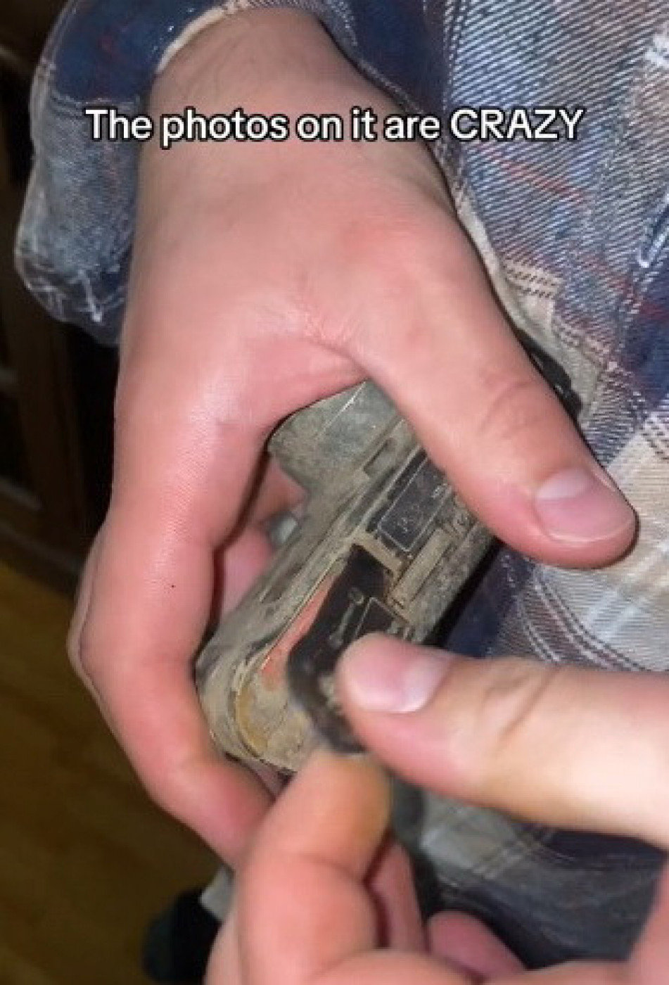 Megan Rouz koja je snimak podelila na Tik toku a koji je sakupio 1,2 miliona sviđanja otkrila je da je njen momak šetajući sa ostalom grupom naišao na stari fotoaparat koji je bio prekriven blatom.
