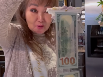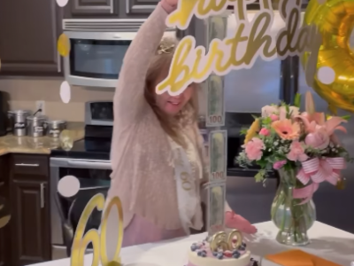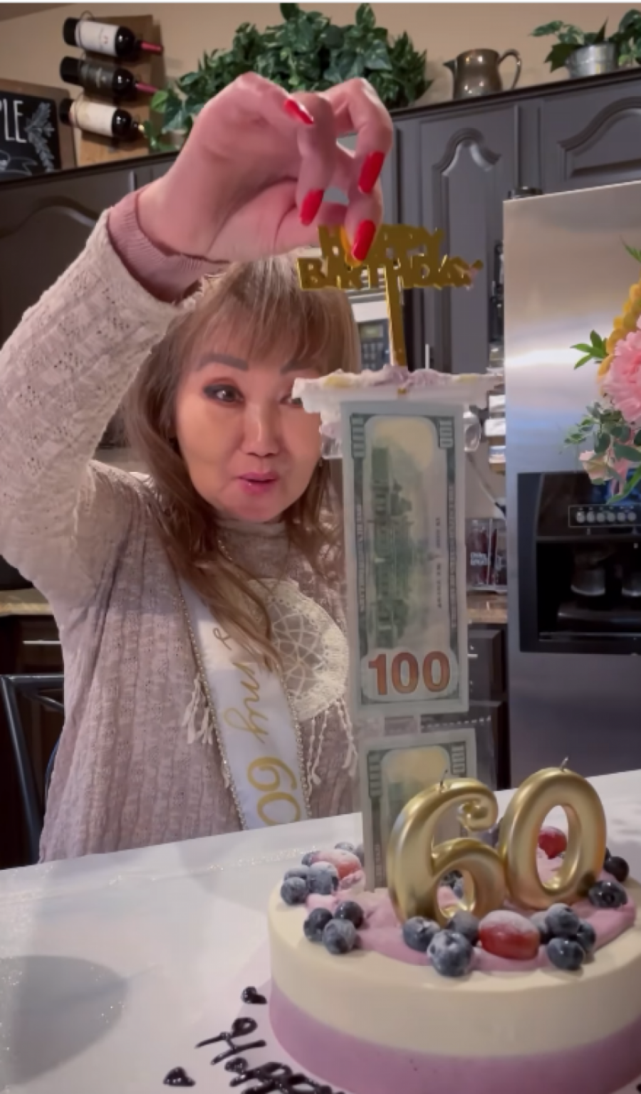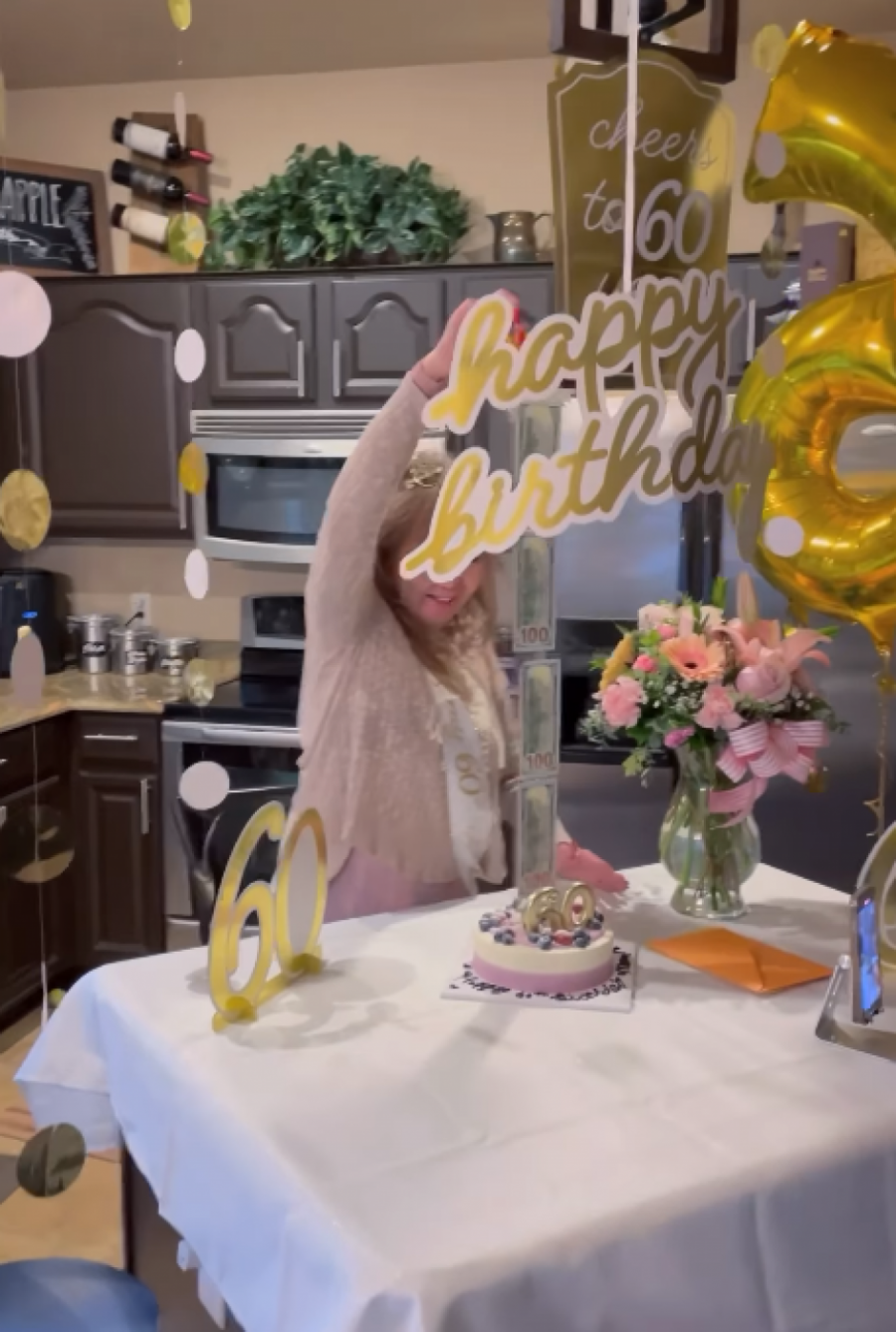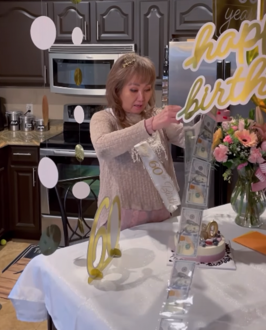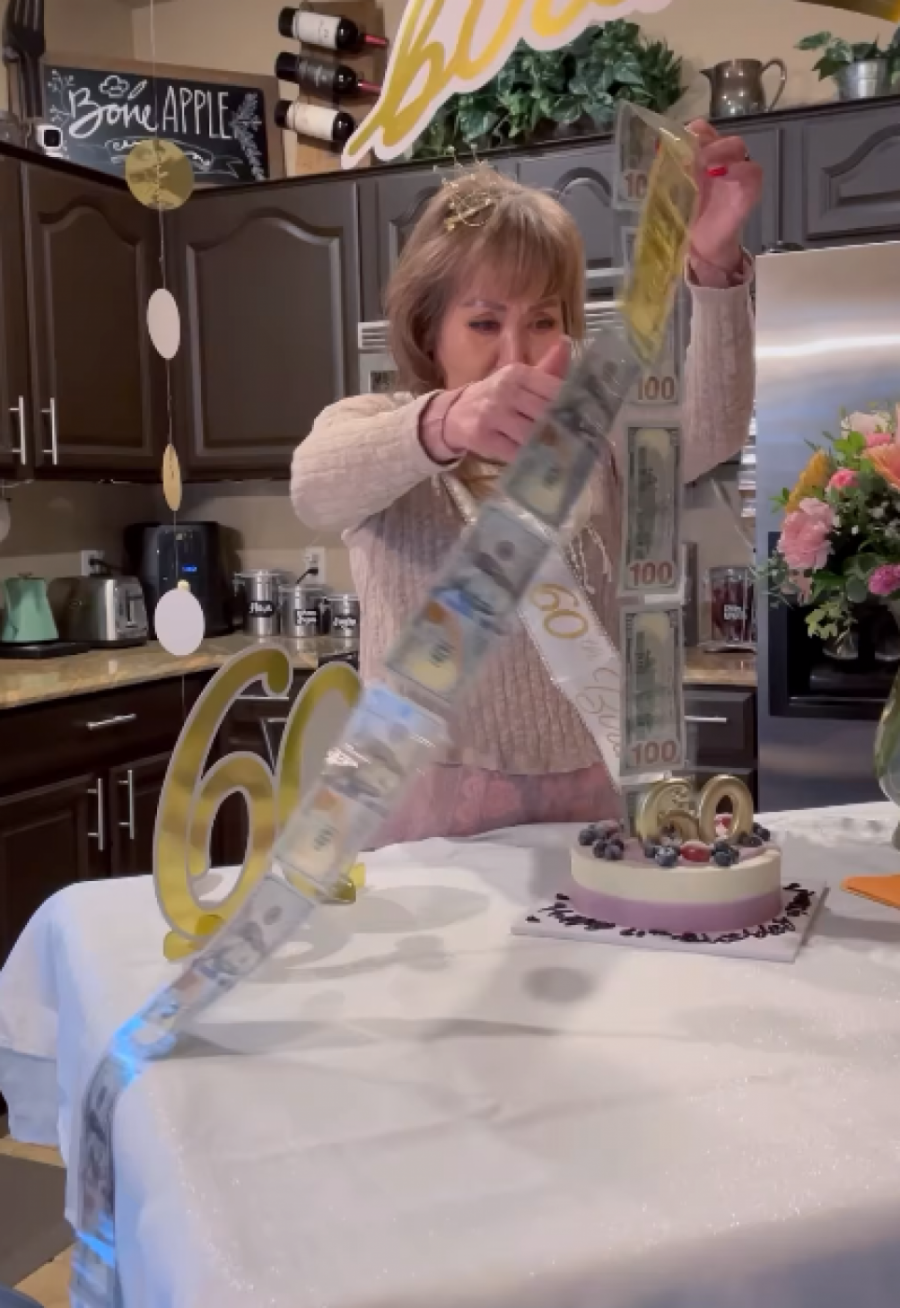 Rođendanska torta koja je bila posebno dekorisana za ovu priliku i prisustvo voljene ćerke su već bili najveći poklon za ovu ženu, ali to je bio tek početak. Njena naslednica je počela da snima mamu koja je oduvala svećice koje su simbolično predstavljale broj 60. Na molbu svoje ćerke da izvadi natpis sa torte, žena je otkrila da se ispod natpisa "Srećan rođendan" krije zapakovana novčanica od 100 dolara. Ovo iznenađenje je samo bilo početak onoga što je usledilo.
