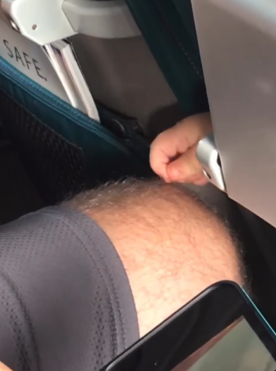 Malena ruka je provirivala sa prednjeg sedišta i mazila noge ovog čoveka. Muškarac je čak u jednom trenutku pružio prst koji je dodirnuo ručicu koja mu je takođe odgovorila nežnim dodirom prsta. Međutim, malena ruka je većinu leta isključivo mazila dlakave noge ovog čoveka. Ili joj je sam taj osećaj bio čudan, dok su se našli komentari da je mališan možda pomislio da je iza njega možda pas.