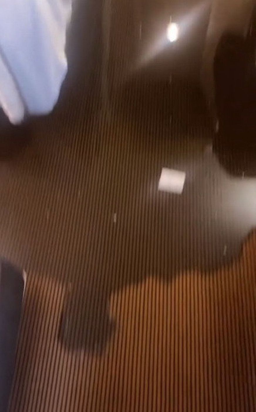 Devojka je izbezumljeno gledala tepih dok je u haljini stajala na krevetu. U pozadini se čuo zvuk vode koja je prskala na sve strane iz neke cevi pa se pretpostavlja da je došlo do nekog pucanja što je prouzrokovalo ovakav kvar i štetu.