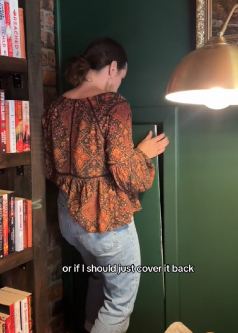 Ova žena je otkrila mala vrata tik do biblioteke koja su vodila ka jezivoj sobici. Pored drvene police za knjige, ova žena je pronašla malu pravougaonu ploču, iako je taj zid već bio renoviran i obojen u zelenu boju. Kloi je pokušala da otvori ta vratanca i imala je i šta da vidi. U pitanju je bila nedovršena skrivena prostorija ispod stepenica sa malenim otvorom koji je delovao kao prozor koji se ne otvara i sa cementnim podom.
