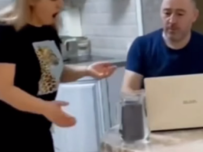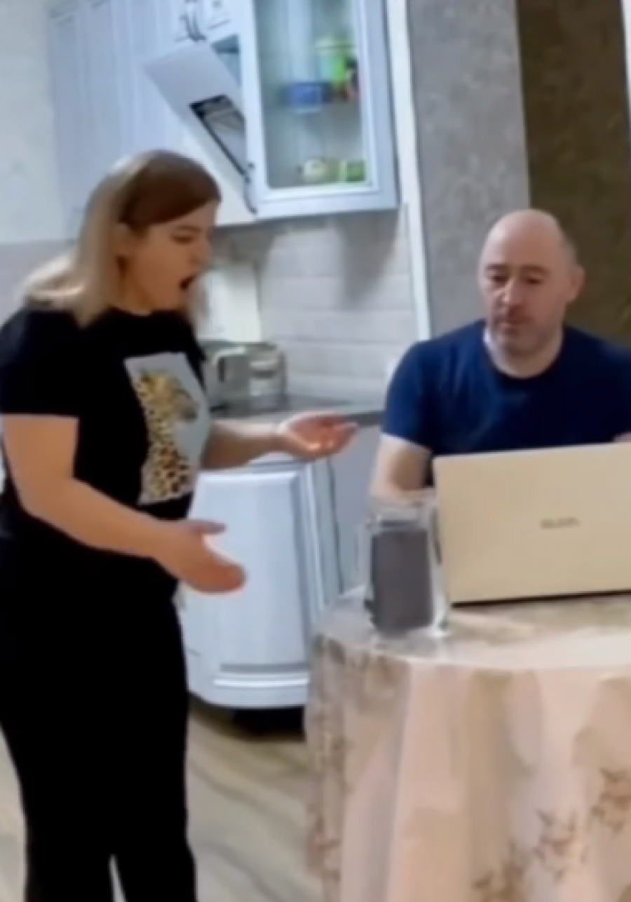 Kad je shvatila šta se desilo, žena je vatila suprugu vidno polomljen laptop, pokušavajući da ga spoji, iako je znala da je to nemoguće. Kako bi izbegla dalju svađu, ona je zadovoljno uz nov telefon u rukama izašla iz prostorije.