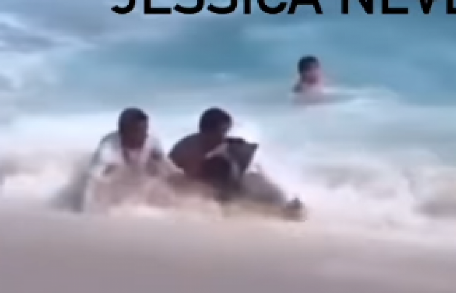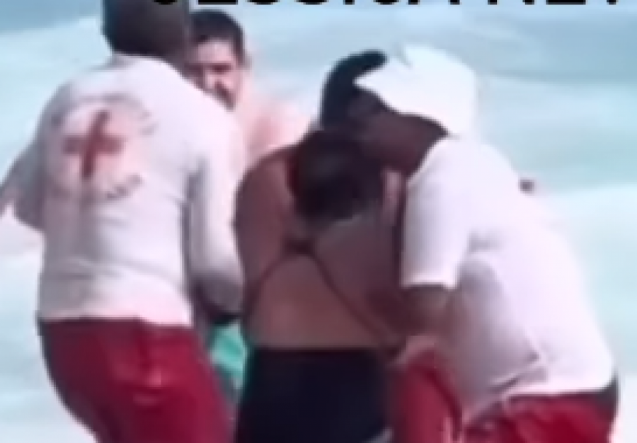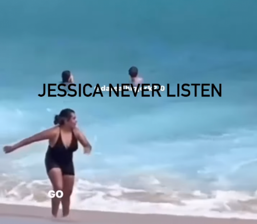 - Gde su spasioci?! Molim vas, neka neko pomogne mojoj ženi, ona ne zna da pliva. Ima li spasilaca?! To, dva spasilaca. Izgleda da će ih sve talas poklopiti. Džesika neeeee, molim vas neka je neko spase - čuje se na kraju snimka uz glasan smeh.